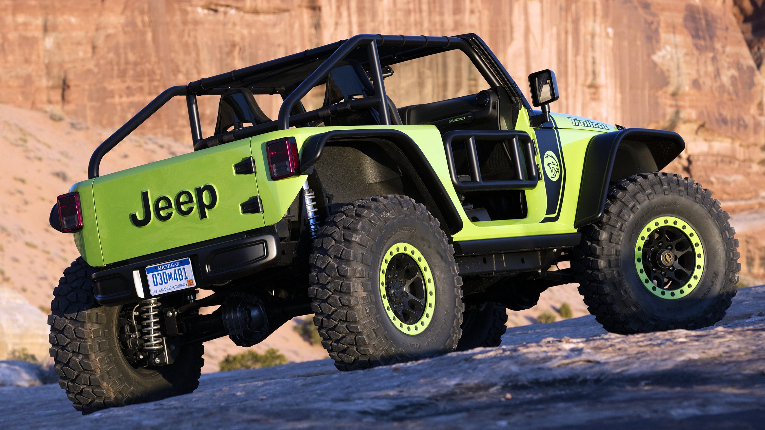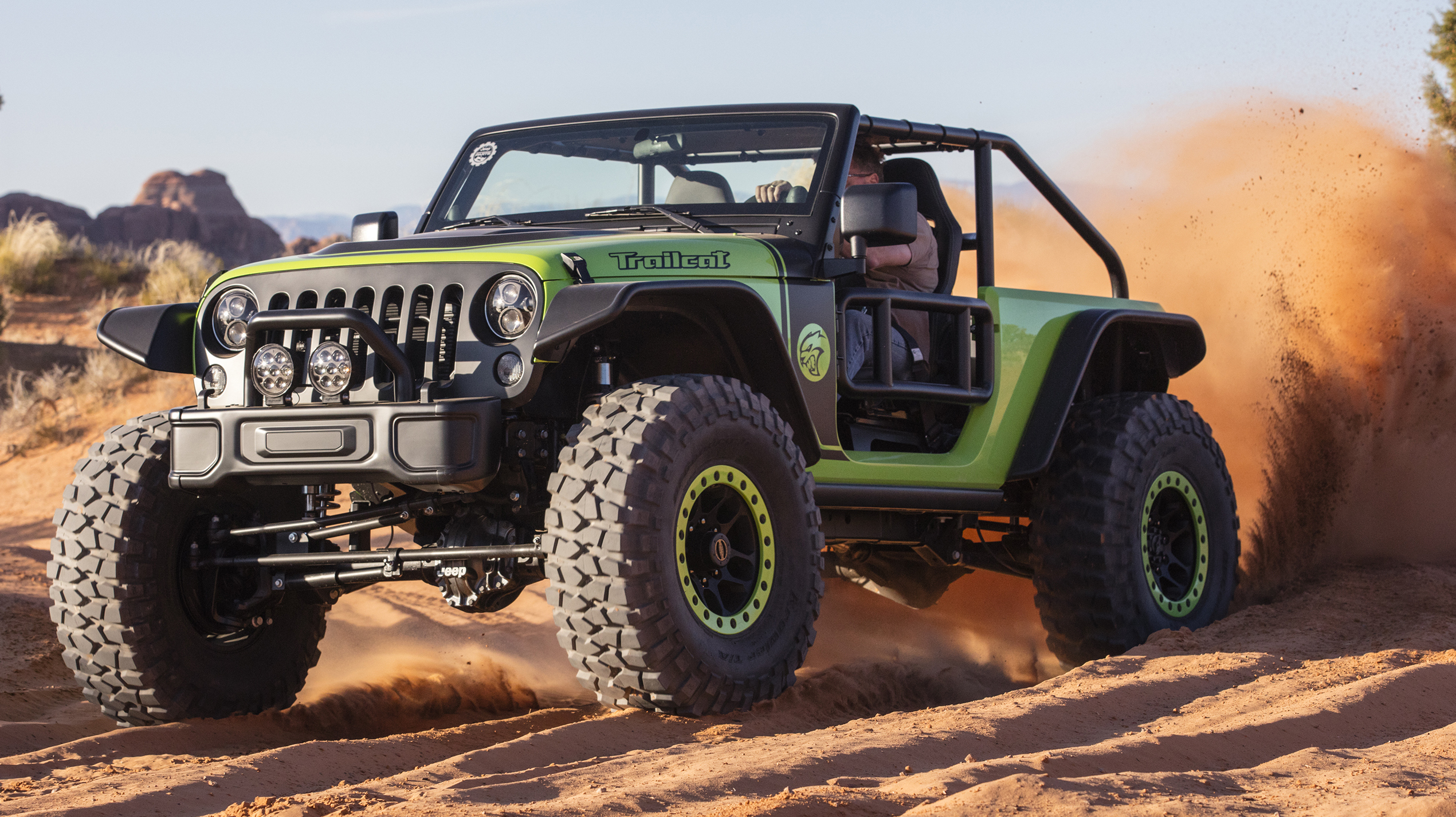 We are continuing or look at some of our favorite Moab Easter Jeep® Safari Concept vehicles from the past decade and we figured we would discuss one of the most outrageous ones. Know we have talked about a lot of Hellcat-powered Jeep® vehicles since we started MoparInsiders. Everything from custom builds like those from our friends at America’s Most Wanted 4×4, a Hellcat-powered Grand Wagoneer, and even our own long-term 2018 Jeep Grand Cherokee Trackhawk has been discussed, but there is one vehicle we haven’t touched much on. That vehicle is the 2016 Jeep Trailcat Concept.