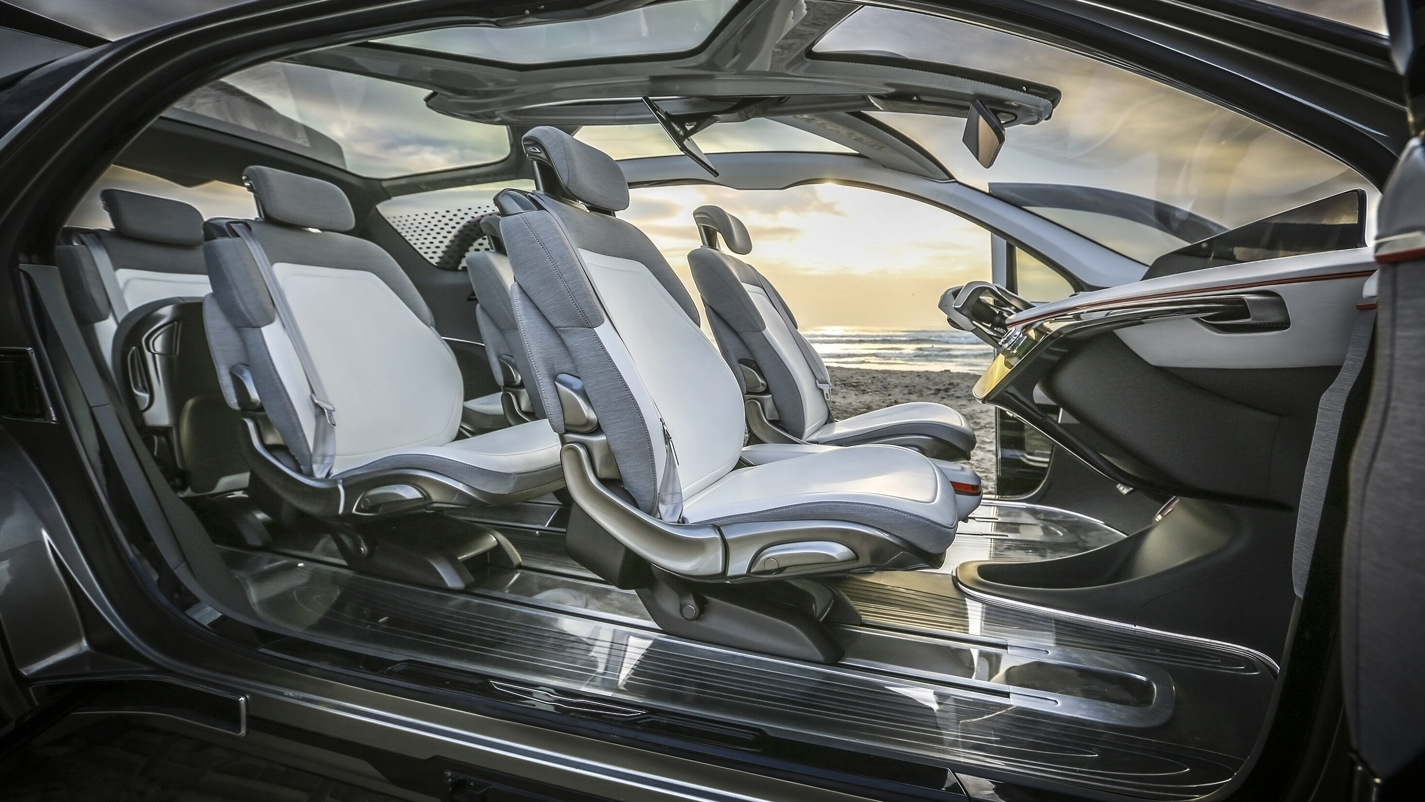 Designed from the inside out, the interior of the Chrysler Portal concept offers the driver and passengers a “third space” – an open and serene atmosphere that provides an alternative environment between work and home.