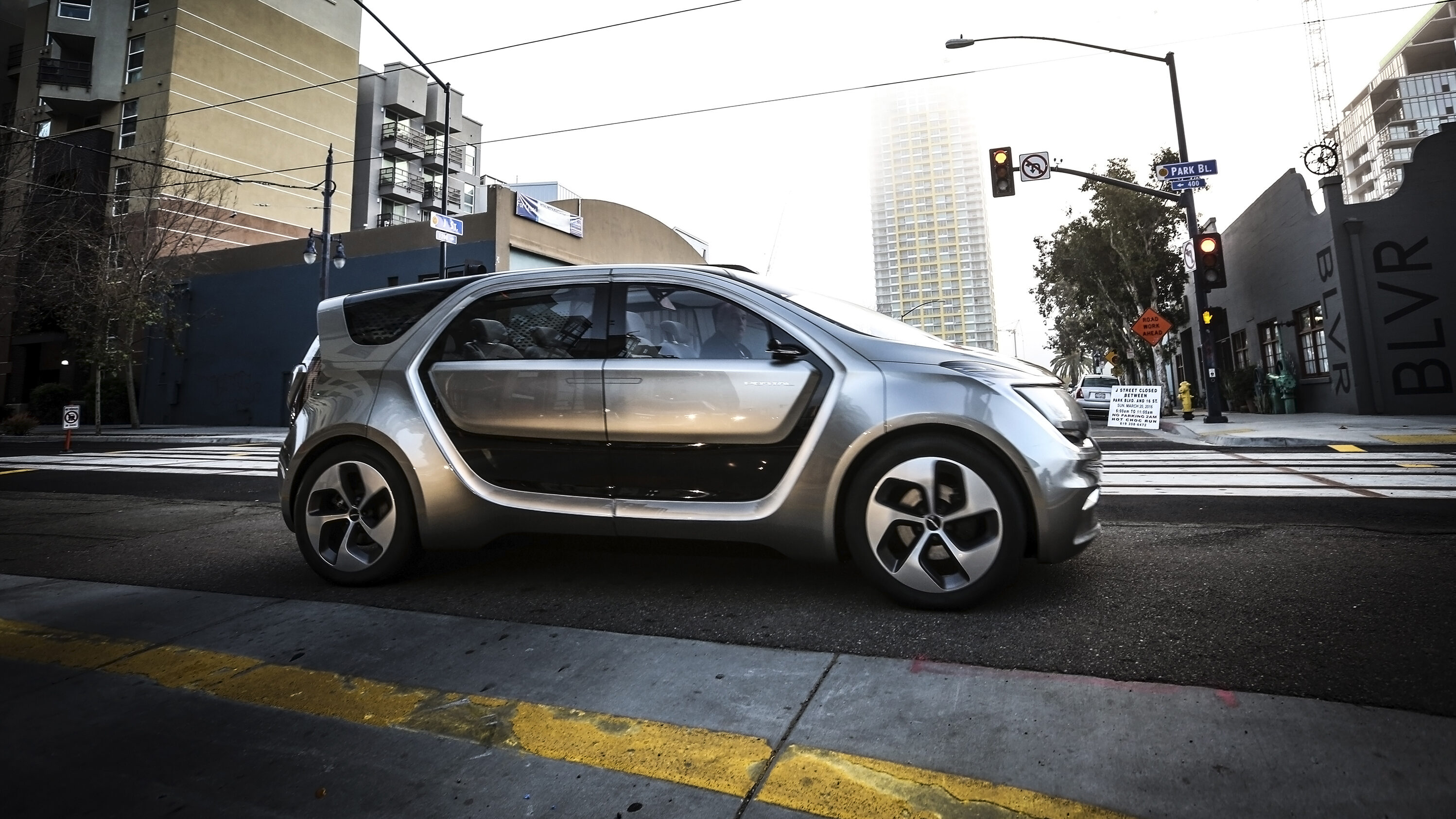 Featuring a mono-volume form that “shrink wraps” the battery-electric vehicle (BEV) powertrain and interior packaging, the Portal’s exterior design is anchored by illuminated, portal-shaped side openings with articulating front and rear doors for easy loading and unloading of people and cargo.