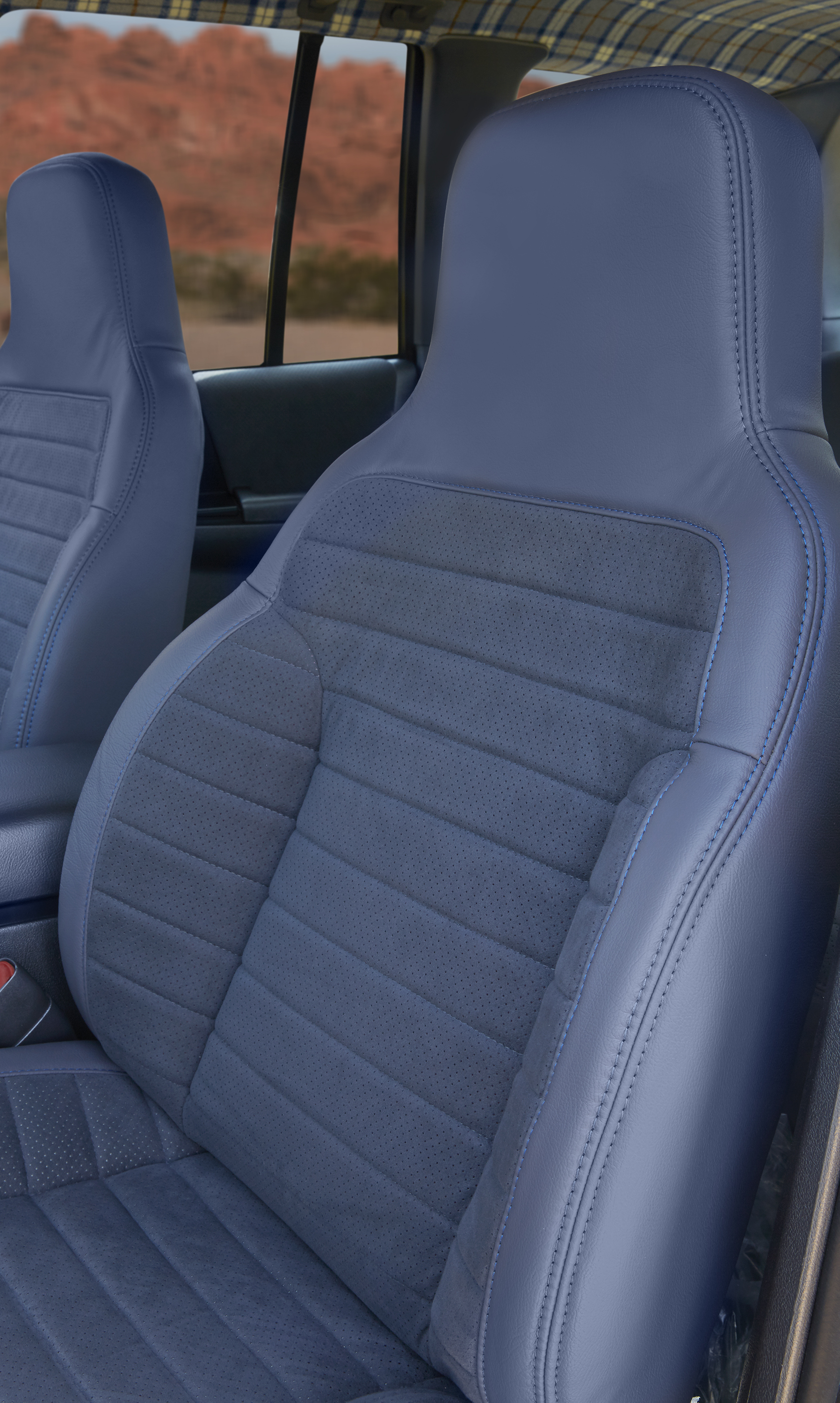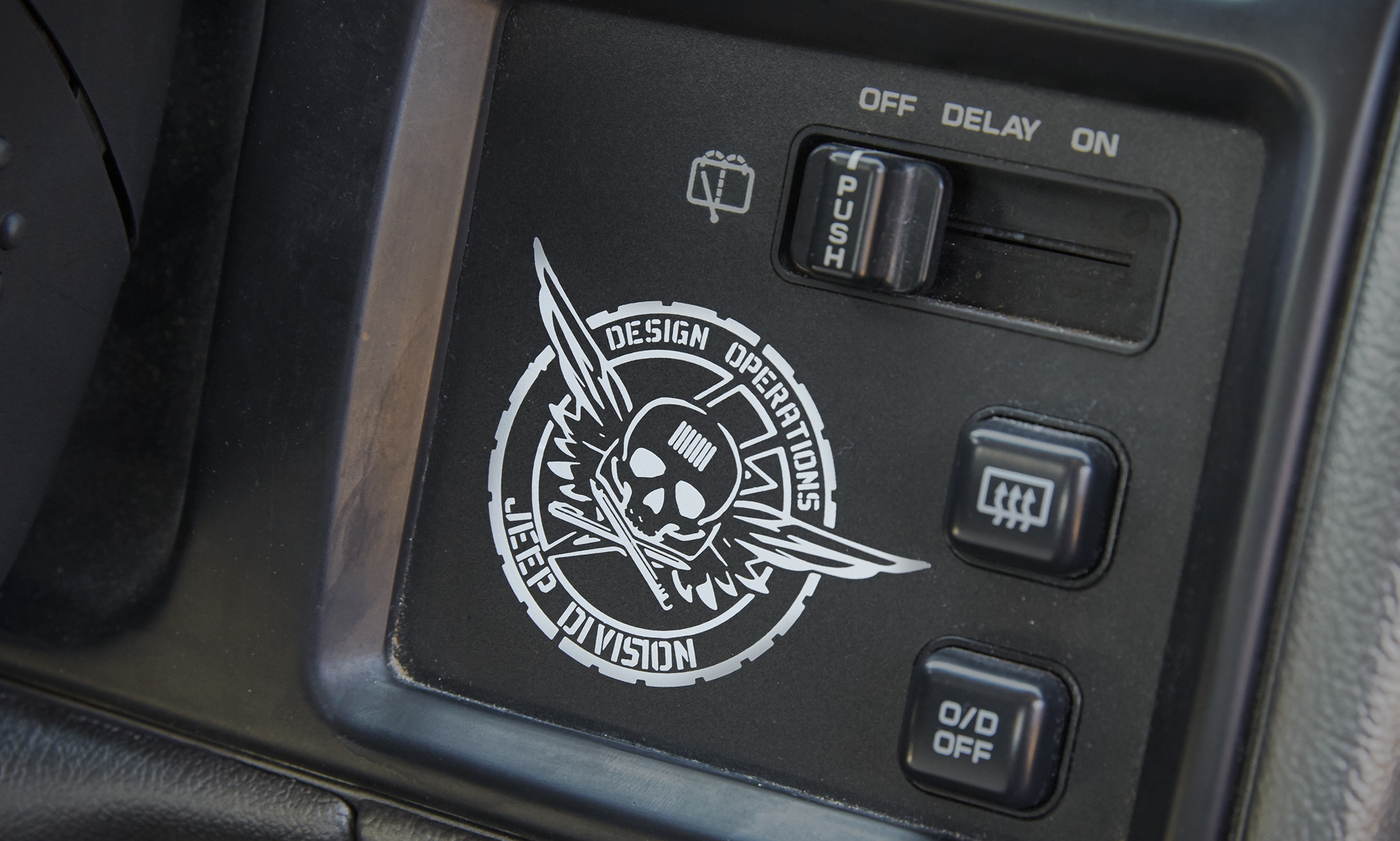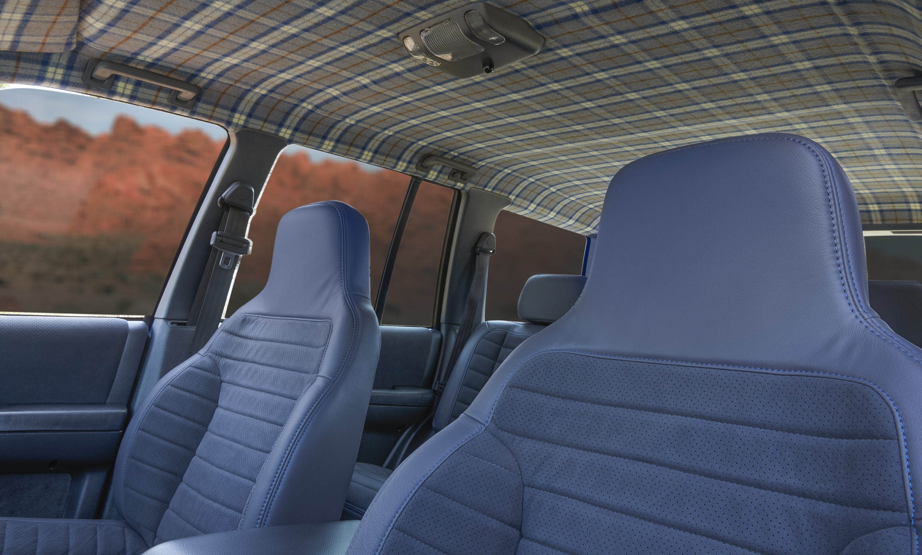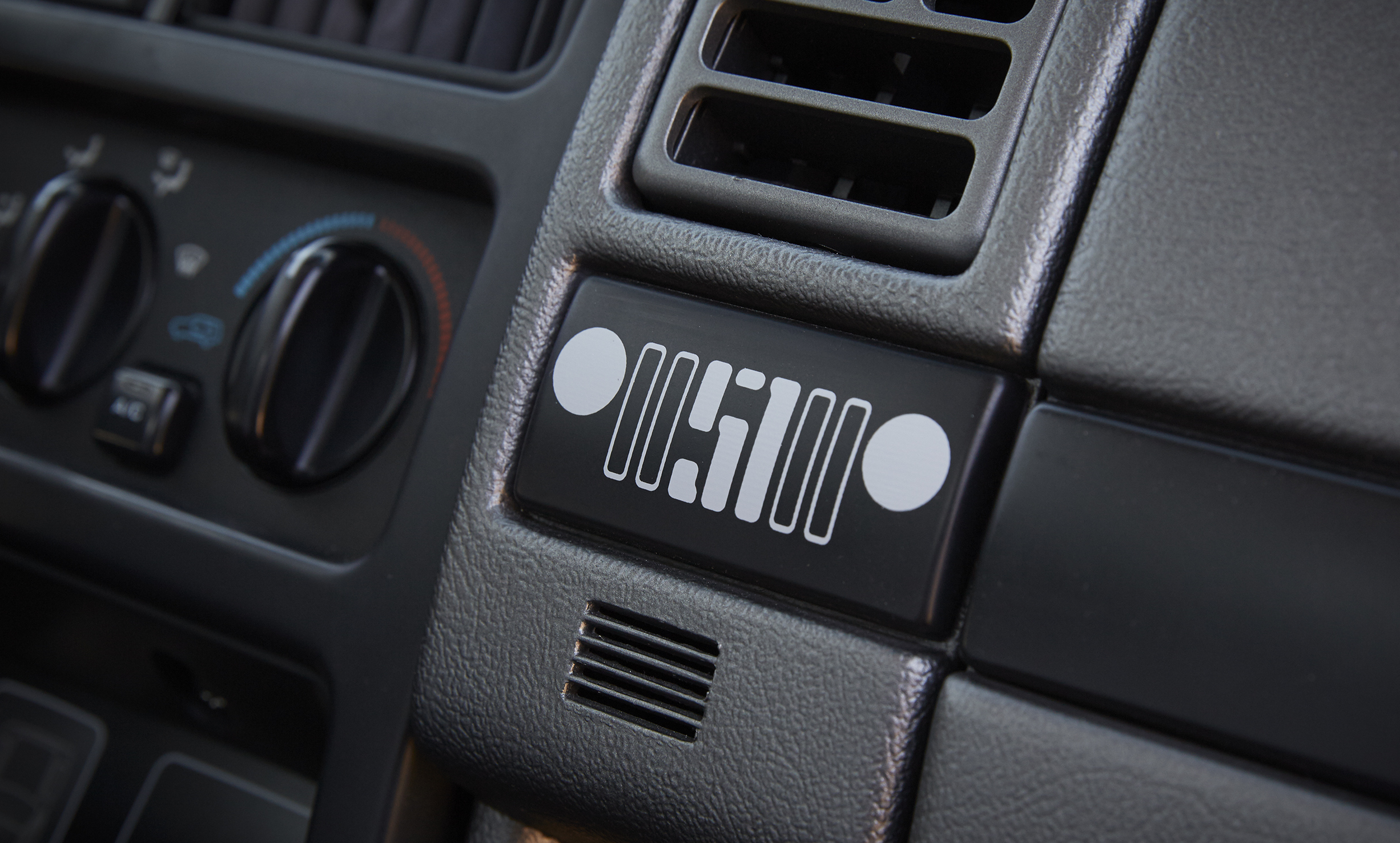 Inside, the interior continues the celebration of the original Grand Cherokee with ’90s-inspired materials and touches, bed liner applied to replace the carpet and accessorized with an old-school car phone.