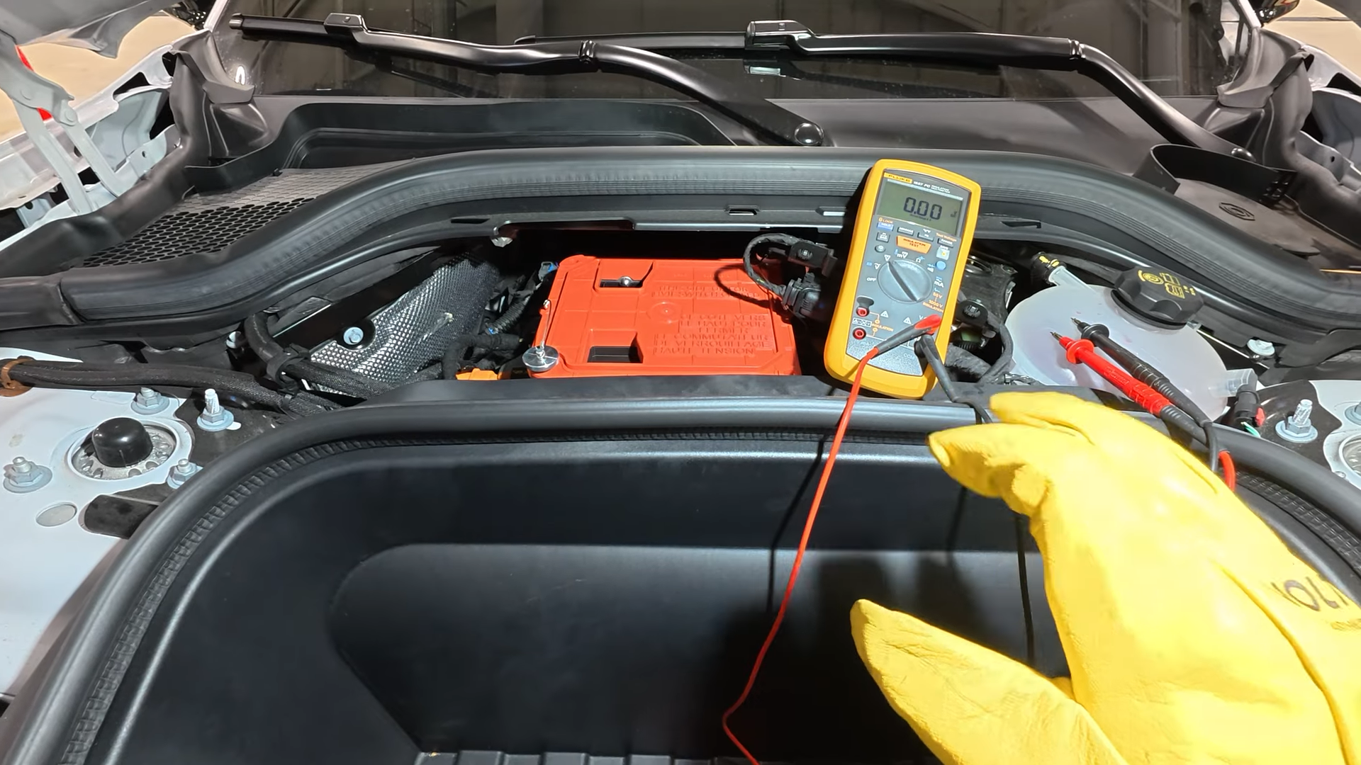 Before disabling anything, Jordan turns the car to READY mode and checks voltage at the test ports. A healthy Charger Daytona should show over 200 volts, and in his case, well over 400 volts. This test verifies that the battery pack is online, communicating correctly, and not hiding a deeper issue.