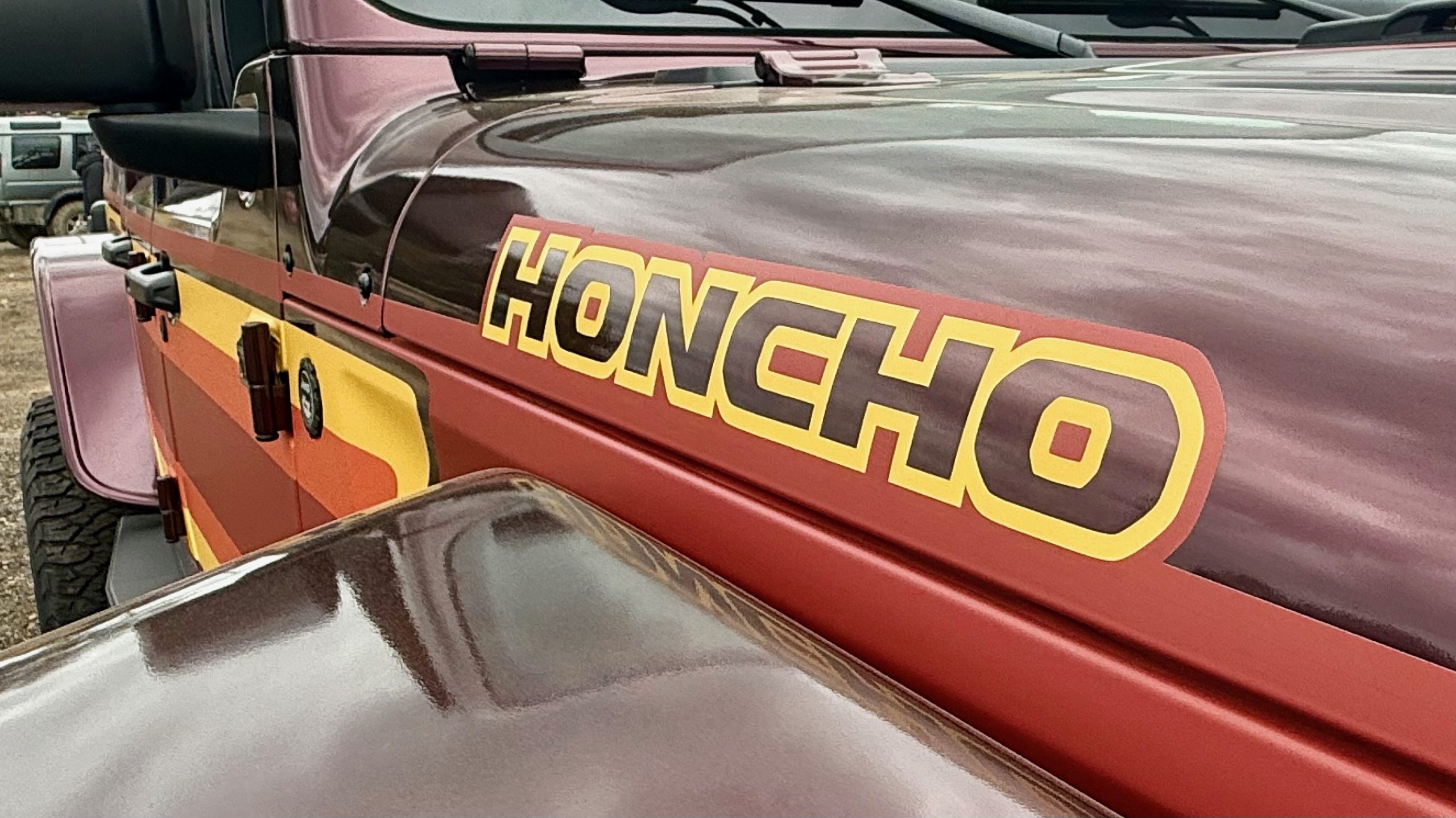 The High-Top Honcho pays tribute to the legendary Jeep Honcho pickups of the 1970s and early 1980s with bold, vintage-inspired graphics. But while the striping and retro touches stir up nostalgia, what sits under the skin is 100% modern engineering designed for the trail. Jeep didn’t just slap some decals on a Gladiator—they completely reimagined it into a purpose-built off-road beast.