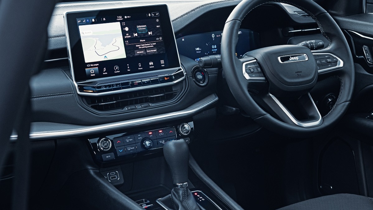Under the hood for the India-spec models are two different powertrain options. There is a 2.0-liter Multijet II diesel producing 173 horsepower and 350 Nm (258 ft.-lb.) of torque. The diesel can be mated to a 6-speed manual or a 9-speed automatic transmission. Customers can also choose a 1.4-liter turbocharged MultiAir inline-four-cylinder gasoline option with either a 6-speed manual or 7-speed dual-clutch automatic transmission. The 1.4-liter delivers 163 horsepower and 250 Nm (184 ft.-lb.). Compass diesel models can be equipped with a four-wheel-drive (4×4) with Selec-Terrain modes.