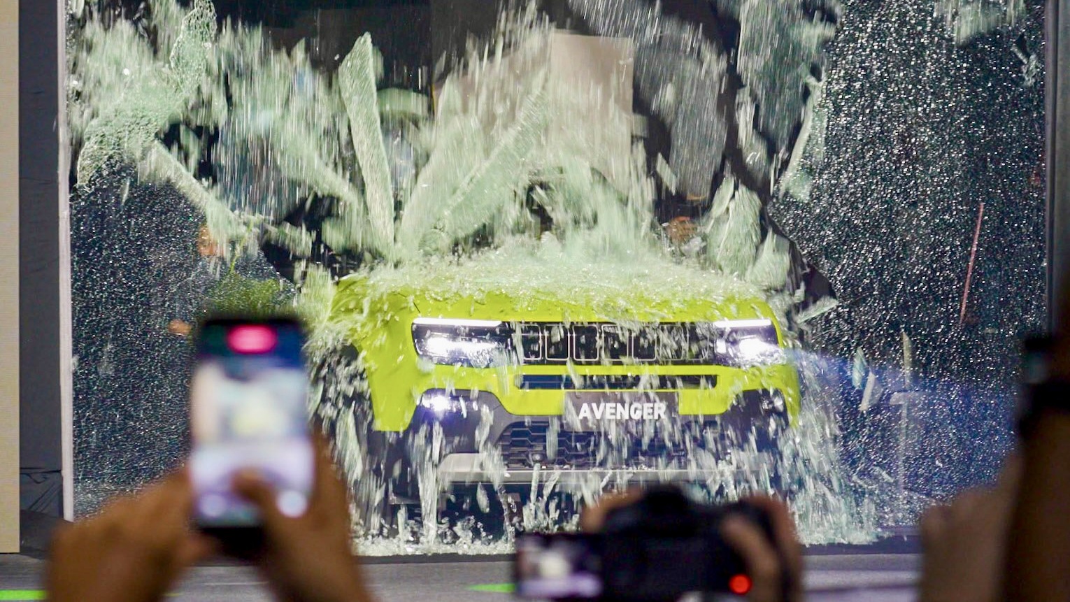 Instead of Cobo Hall’s iconic staircase and glass façade, the Avenger burst into view as part of a high-energy opening at the São Paulo Motor Show. Jeep reinforced the presentation with a massive anamorphic (3D) digital panel inside the Jeep Territory booth, featuring a looping animation of the Avenger “breaking in” that pays tribute to the original Grand Cherokee moment — but with a modern, digital spin.