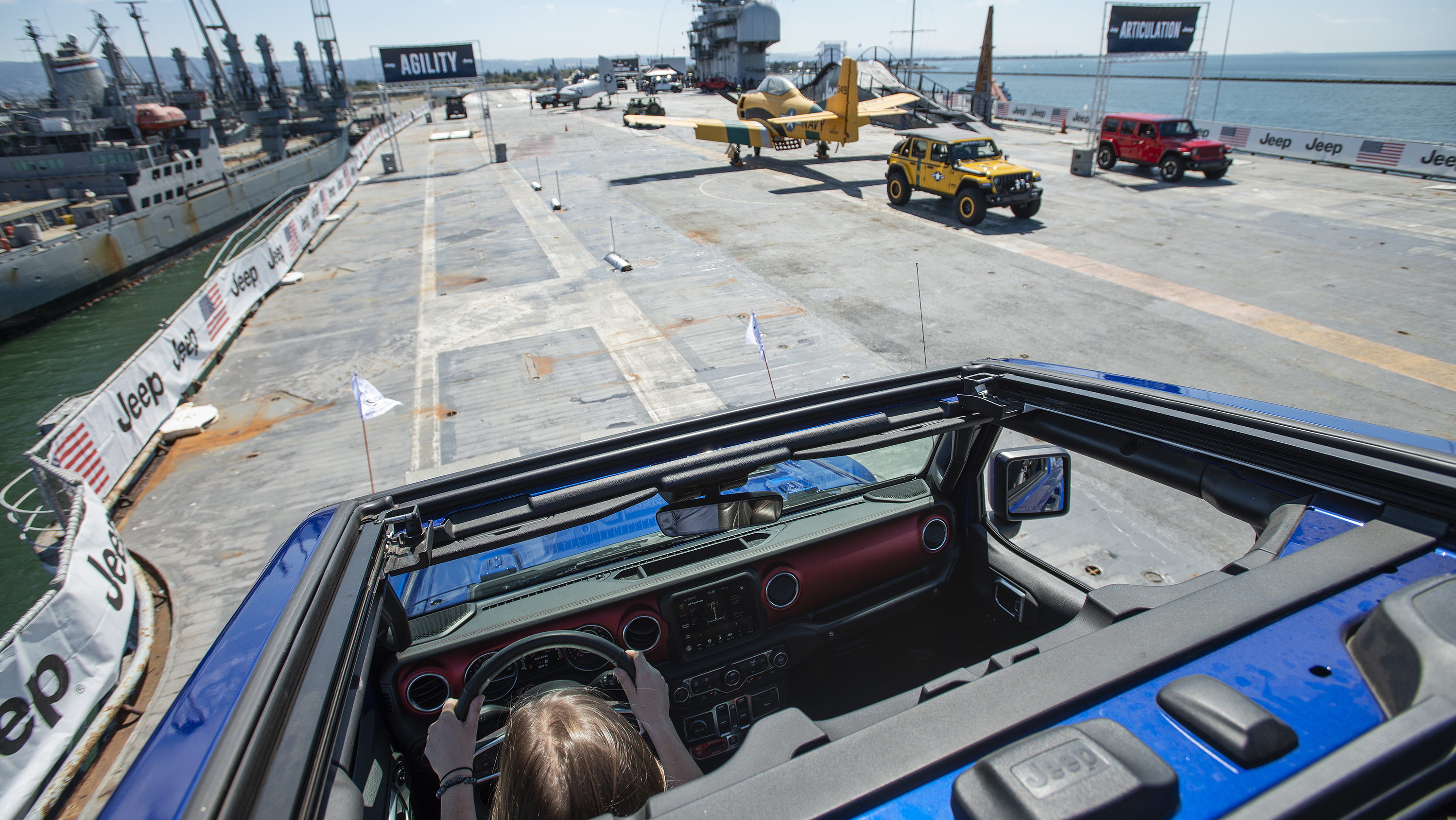 This month, marked the 50th anniversary since man landed on the moon and the Jeep® brand celebrated the milestone in a unique way. Aboard the retired aircraft carrier USS Hornet, special participants got an opportunity to ride in the all-new 2020 Jeep Gladiator pickup and the 2019 Motor Trend SUV of the Year, Jeep Wrangler on the vessel’s flight deck.