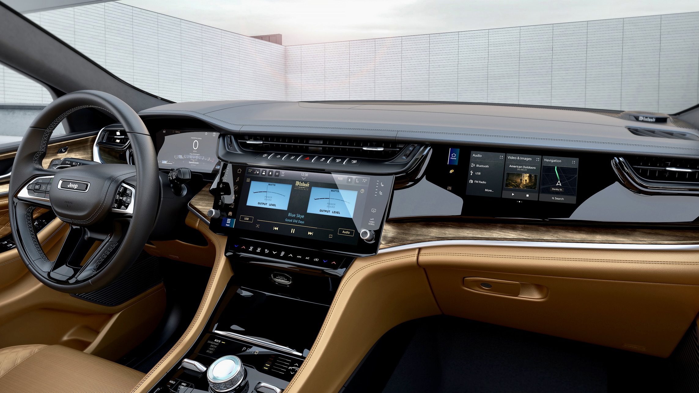 The passenger side gets its own optional 10.25-inch interactive display, allowing front passengers to control media and navigation and view the rear camera. For audiophiles, Jeep continues to offer the McIntosh® MX950 premium sound system, with a 17-channel amplifier producing up to 950 watts through 19 speakers and a 10-inch subwoofer.