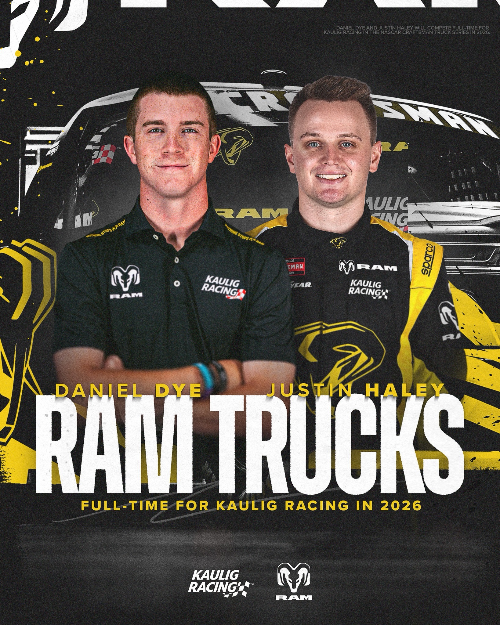 Dye, who has spent 2025 driving for Kaulig in the Xfinity Series, will remain with the team as part of the Truck effort. For him, joining the Ram 1500 program feels like coming home.