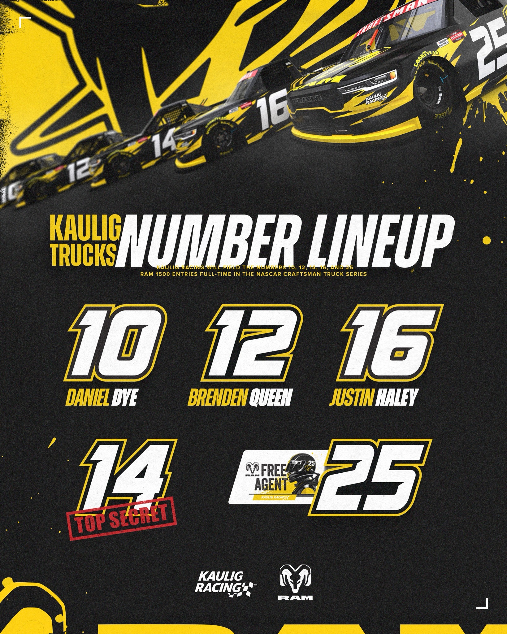 With Ram supplying factory backing, Kaulig Racing will field five full-time Ram entries next year. Here are the confirmed numbers and what we know so far: