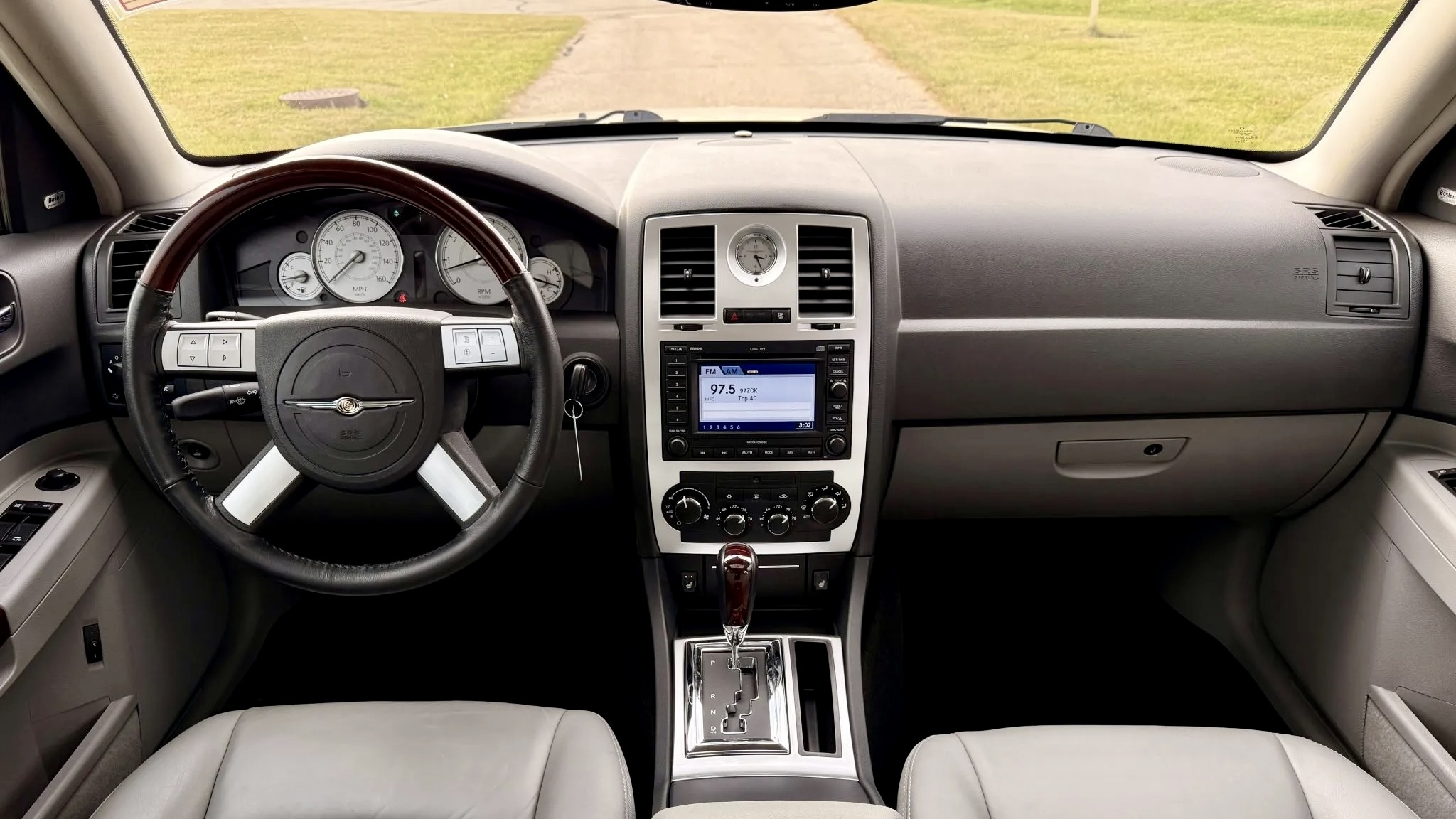 Inside, the 300C continues its premium theme with Light Slate Gray Torino leather, real walnut wood trim, and heated eight-way power front seats. Technology was ahead of its time, featuring Uconnect infotainment, navigation, and a seven-speaker Boston Acoustics sound system included with the Navigation and Sound Group II package. Power-adjustable pedals, dual-zone climate control, and a wood-trimmed steering wheel complete the upscale feel.
