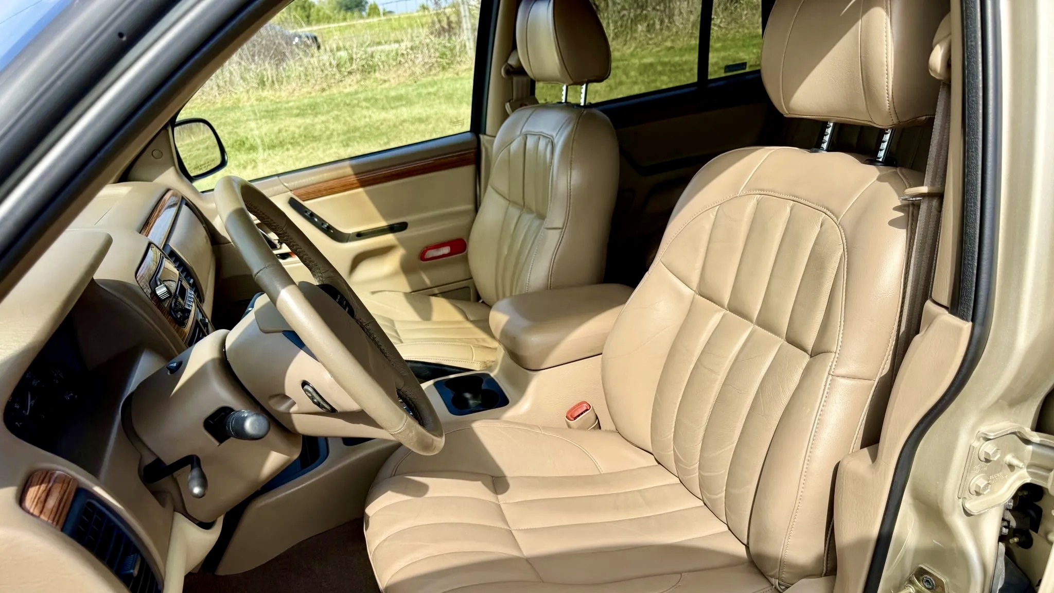 Inside, the Grand Cherokee Limited shows off its premium side. Camel leather covers the seats, with woodgrain accents adding a touch of late-’90s luxury. The front buckets are power-adjustable and include driver’s memory settings. Convenience features like cruise control, keyless entry, power windows, and locks are all here. Jeep didn’t skimp on entertainment either—the Infinity Gold sound system and cassette stereo keep things period correct, making it a time capsule for anyone who remembers popping in a mixtape for a road trip.