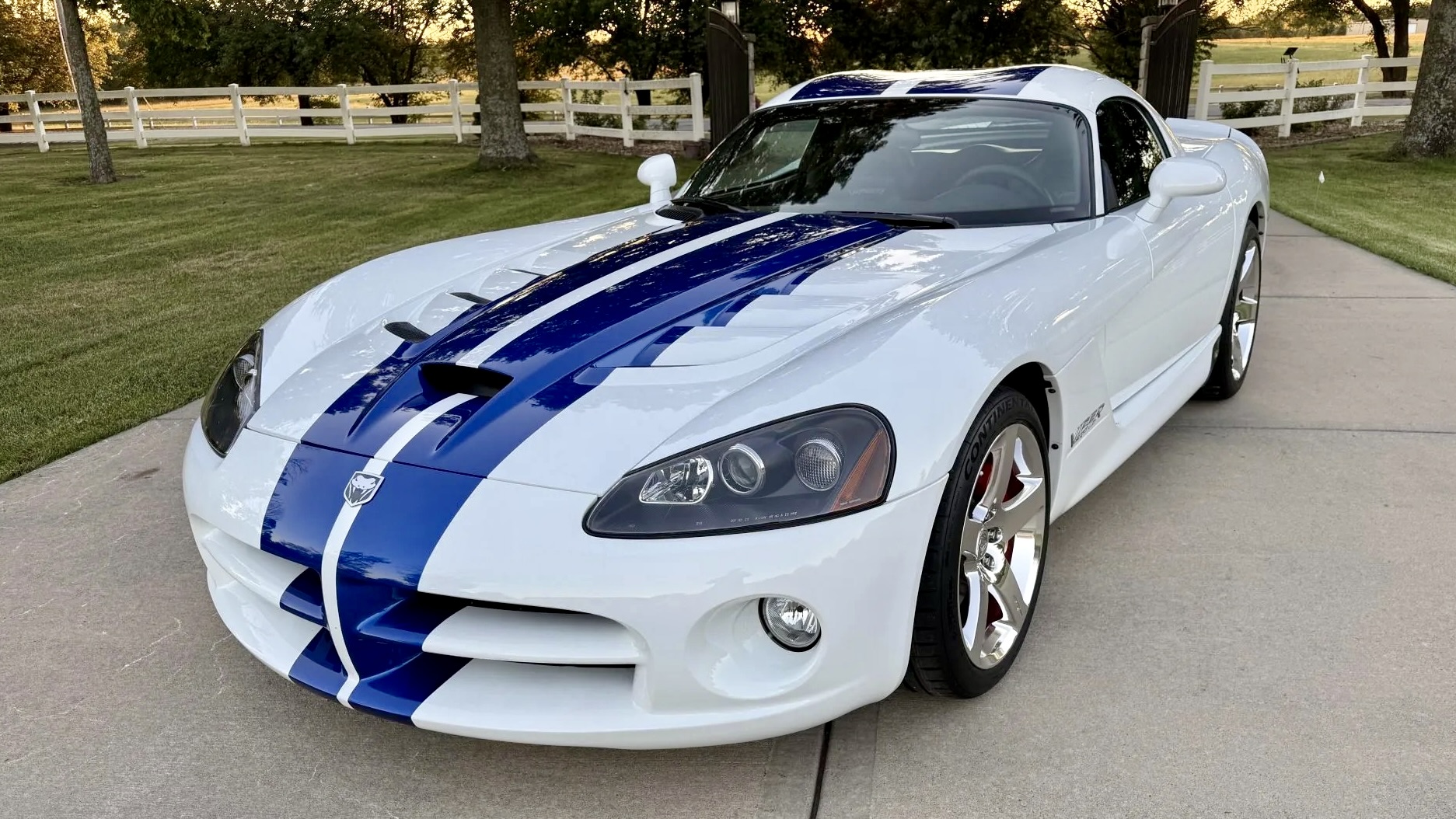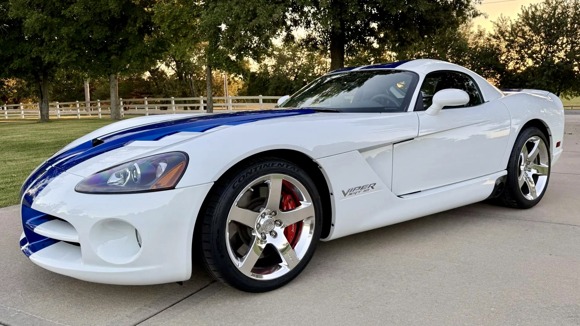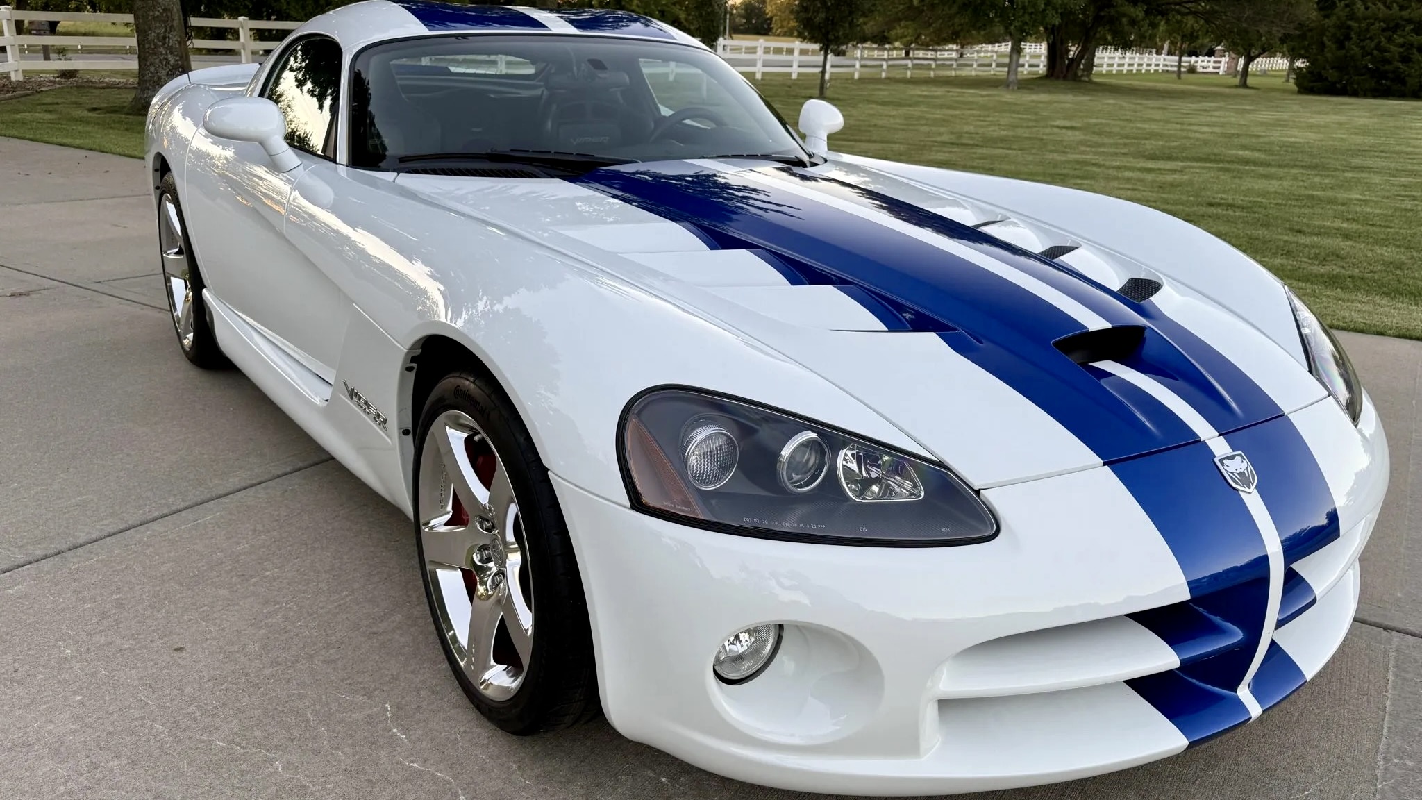 It’s not every day that a pristine Dodge Viper SRT-10 Coupe with delivery-level mileage comes up for grabs. This 2010 Dodge Viper SRT-10, finished in Viper White with iconic blue racing stripes, is now listed at no reserve on BringATrailer, offering collectors a chance to own one of the cleanest Gen IV Vipers ever to surface.