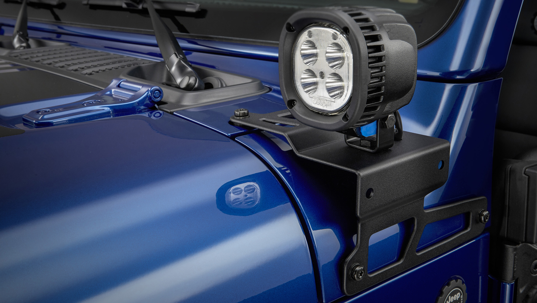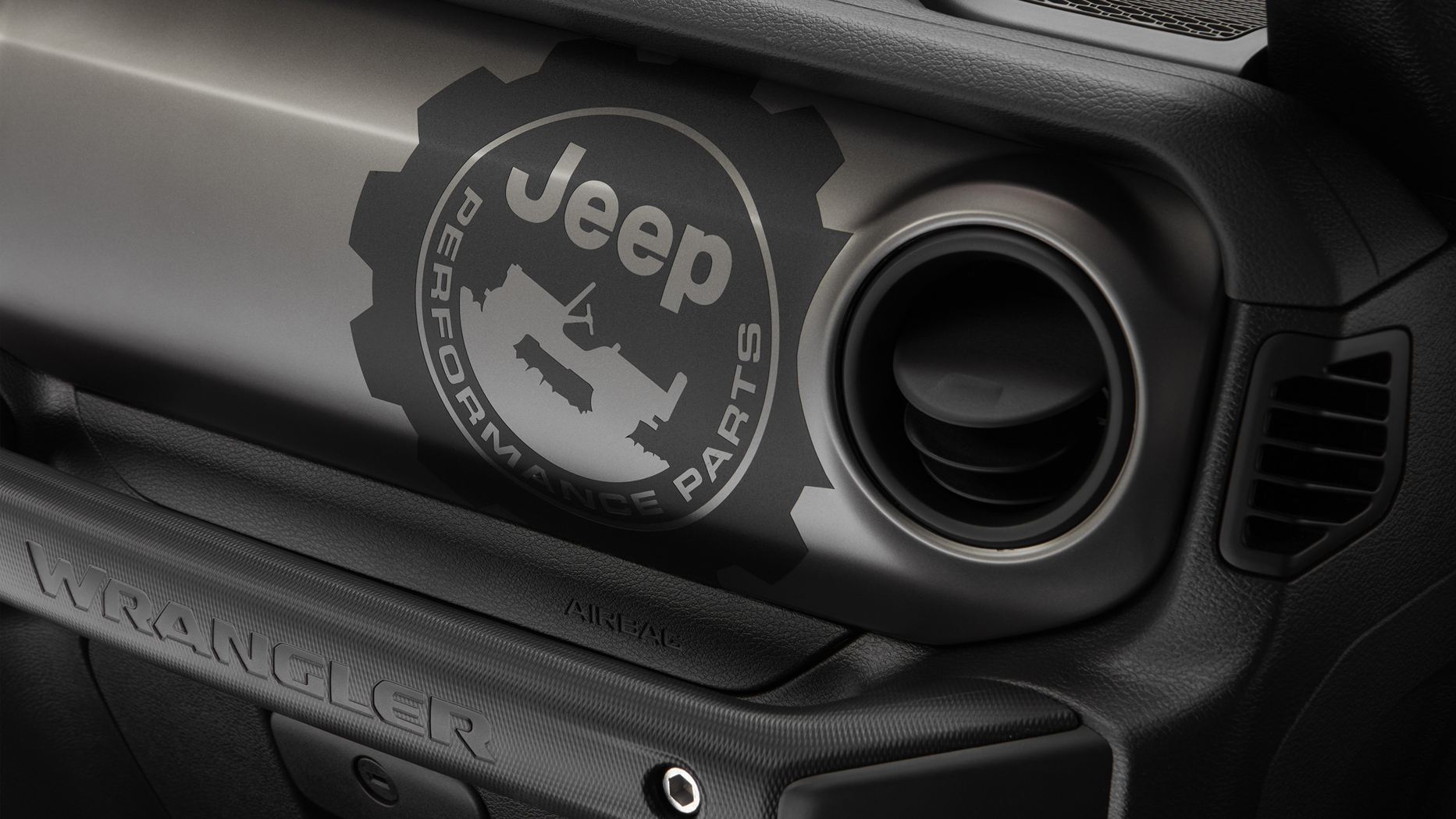 Other styling details can also be applied to the heavily accessorized Wrangler, with the option of an American flag hood graphic, blacked-out fender vents, an optional blacked-out fuel door, JPP graphics on the passenger-side quarter panel (opposite side of the gas cap), and a laser-etched aluminum “JPP” badge on the driver’s side of the swing gate.