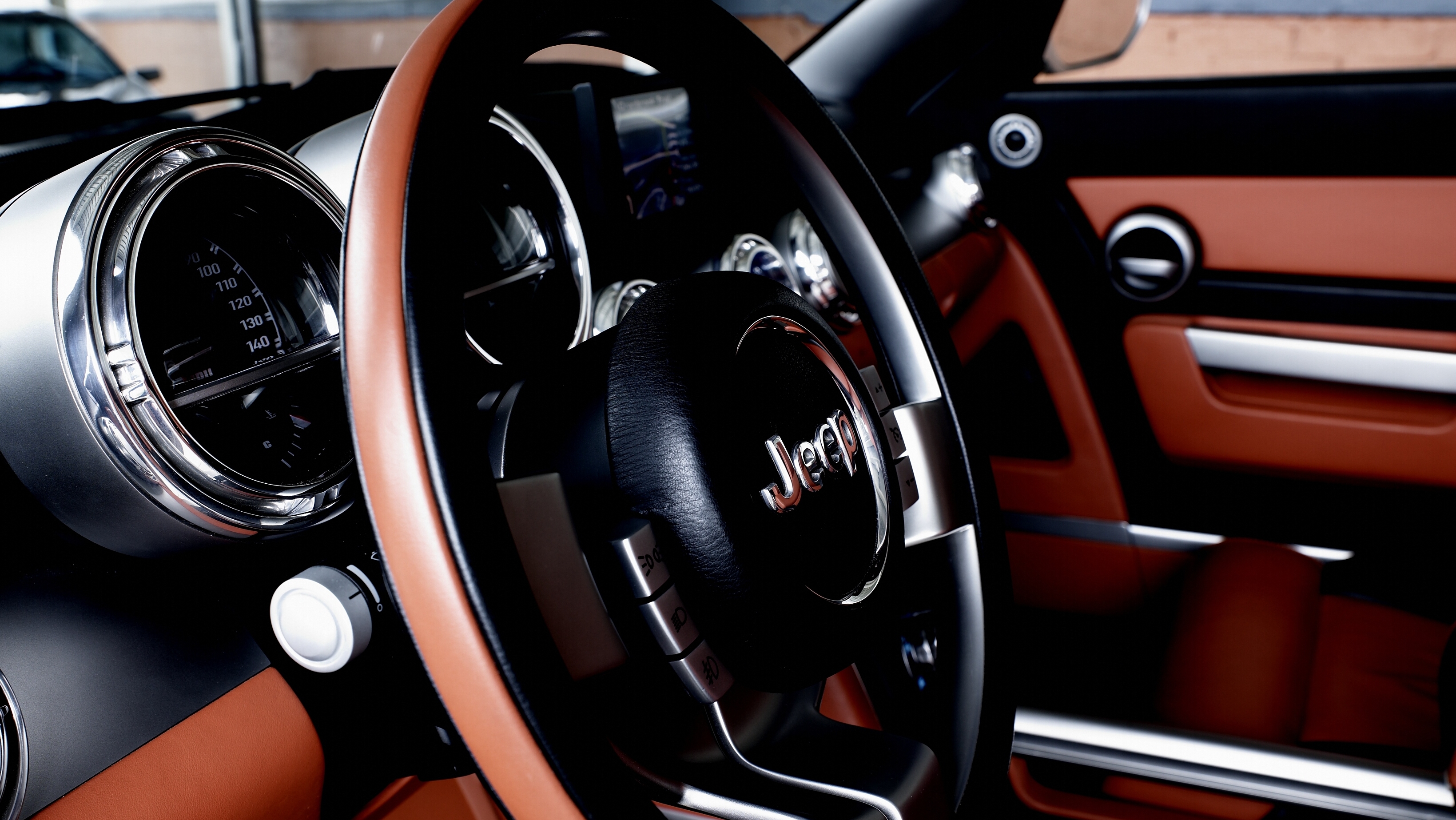 The body was finished in Argent Pearl high-gloss paint, contrasted by slightly darker low-gloss flares and lower-body cladding to enhance the Trailhawk’s width and visual toughness.