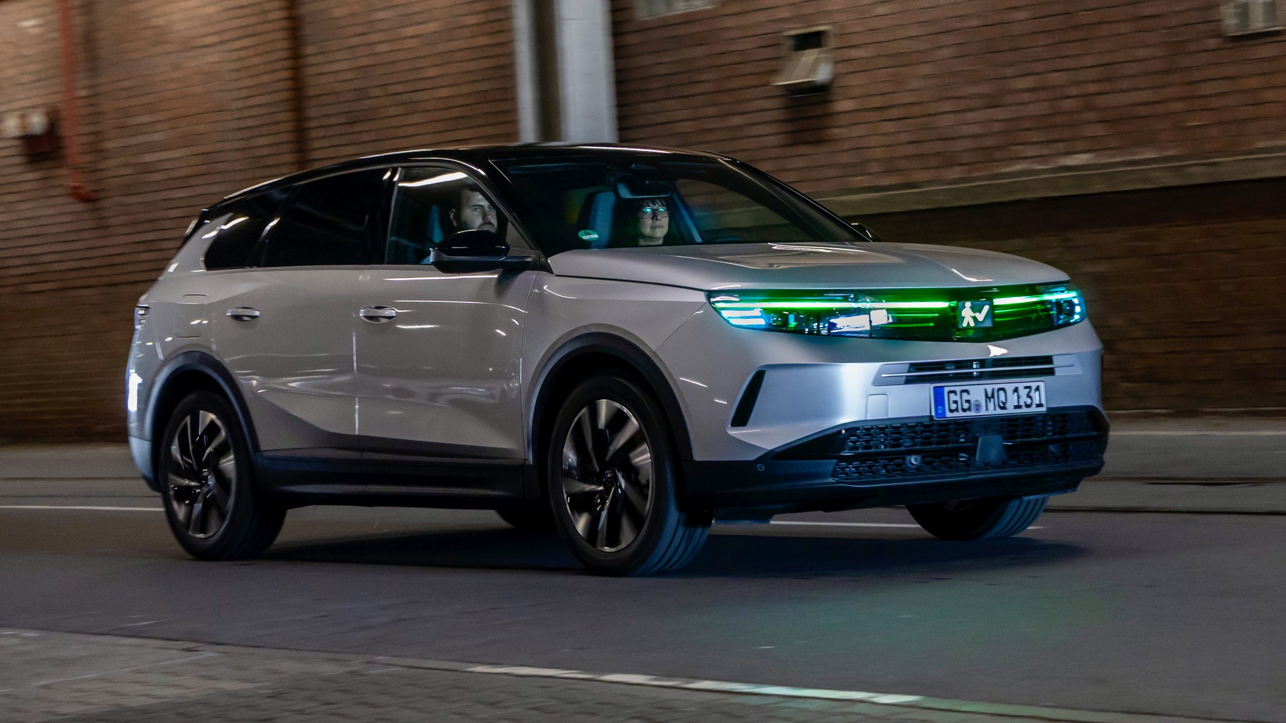 The Opel Grandland demonstrator is equipped with cameras, gesture-recognition systems, and an AI program that can predict human intentions. For example, if the car detects a child running toward the street or a pedestrian stepping out from between two parked cars, it triggers a series of lighting responses: