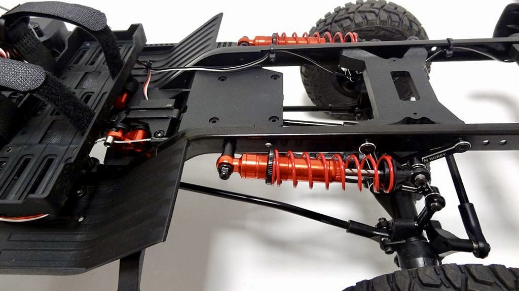 Under the body, the ROC doesn’t mess around. A Hobbywing QuicRun Fusion 8IGHT SE brushless motor/ESC combo delivers smooth torque whether you’re crawling over rocks or blasting across dirt. The driveline is all-metal for durability, backed by aluminum wheels, coil-over oil shocks, and a solid rear axle with cantilever suspension. Adjustable weight distribution is possible thanks to multiple battery mounting positions.