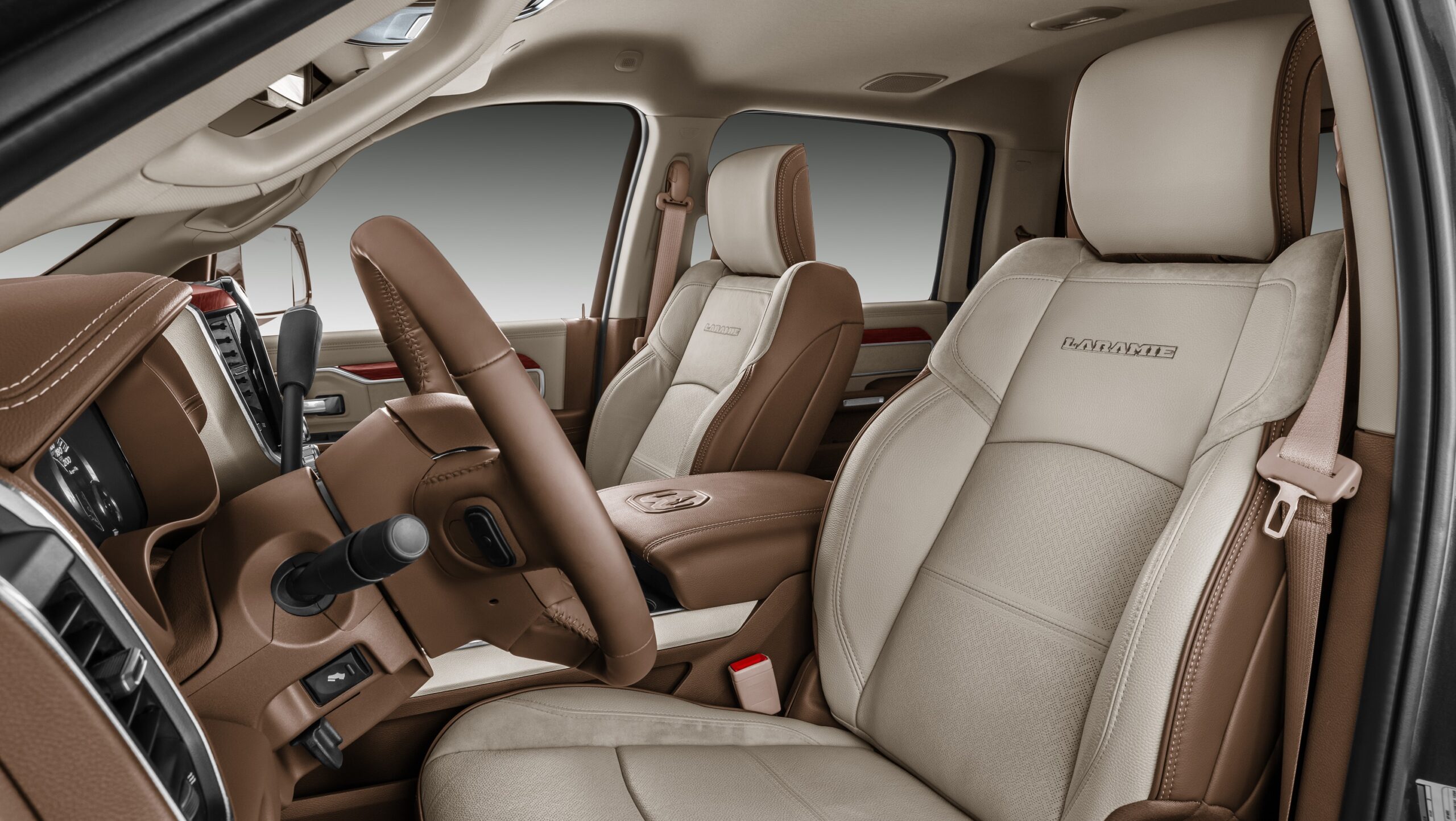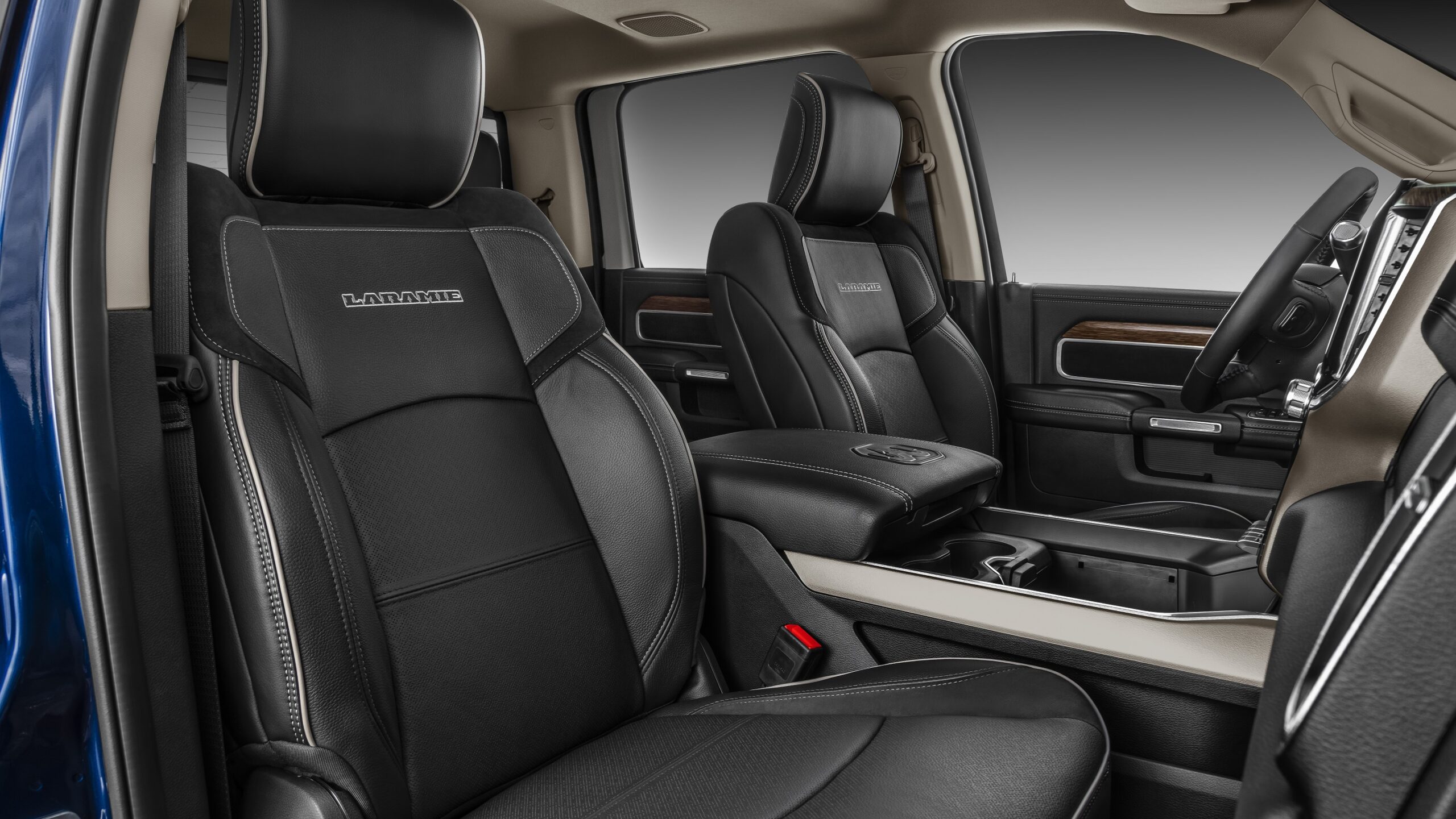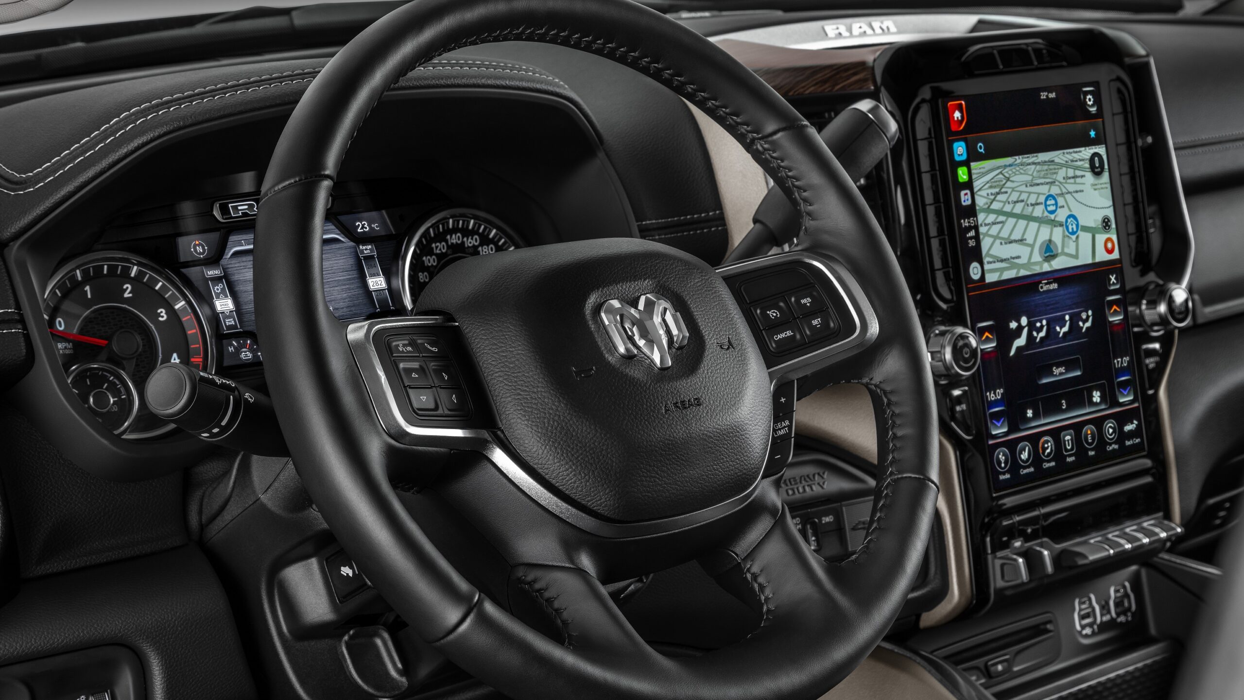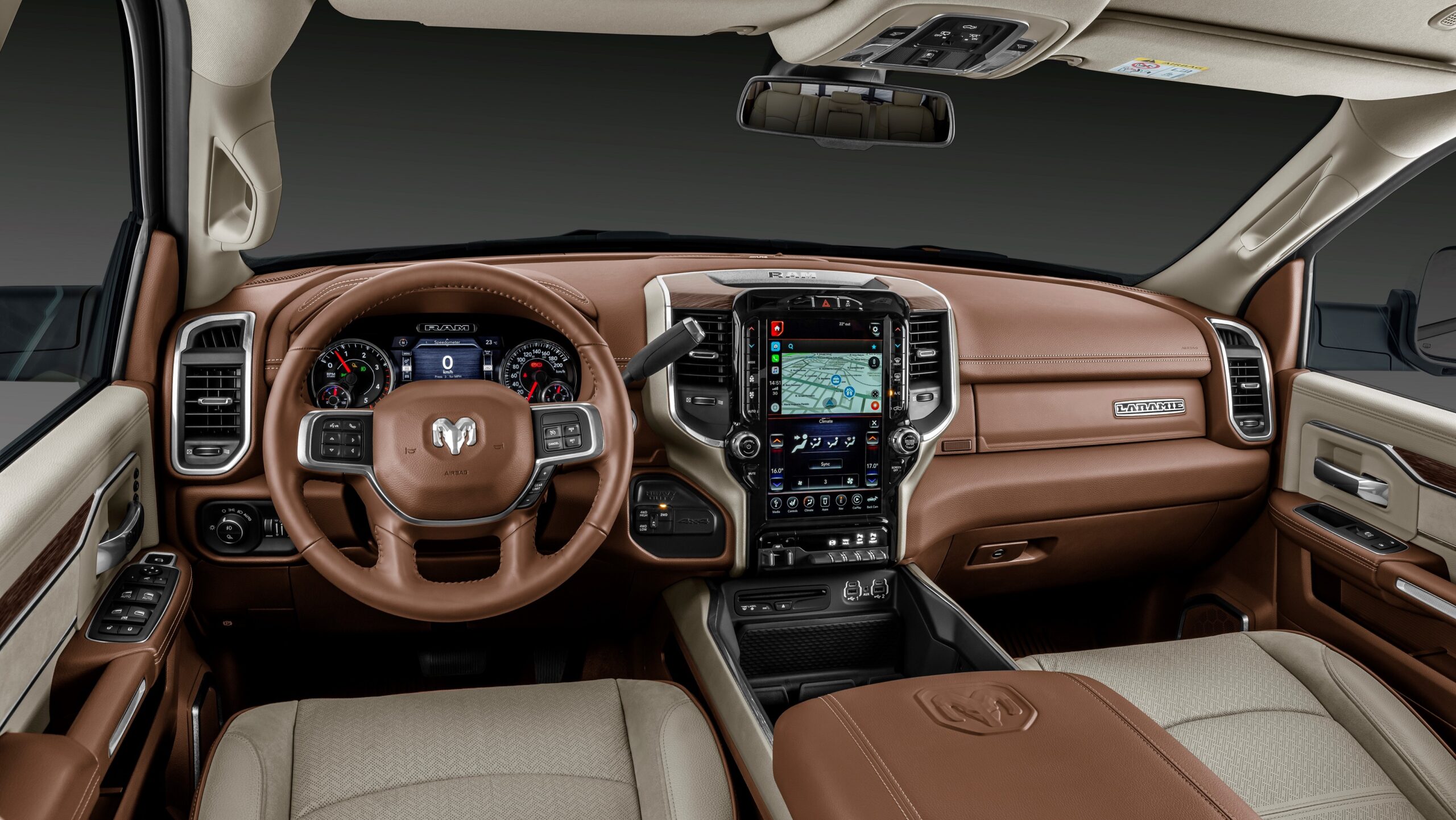 Inside, the new instrument panel combines a strong, structurally interlocking appearance, pushing the central controls up and toward the driver, improving the overall reachability of system controls. The 2020 Ram 2500 Laramie features a 7-Inch, full-color, 3D animation-capable driver information display, with a reconfigurable function that enables Ram truck drivers to personalize information inside the instrument cluster. The display is designed to visually communicate information, using graphics and text, quickly, and easily.
