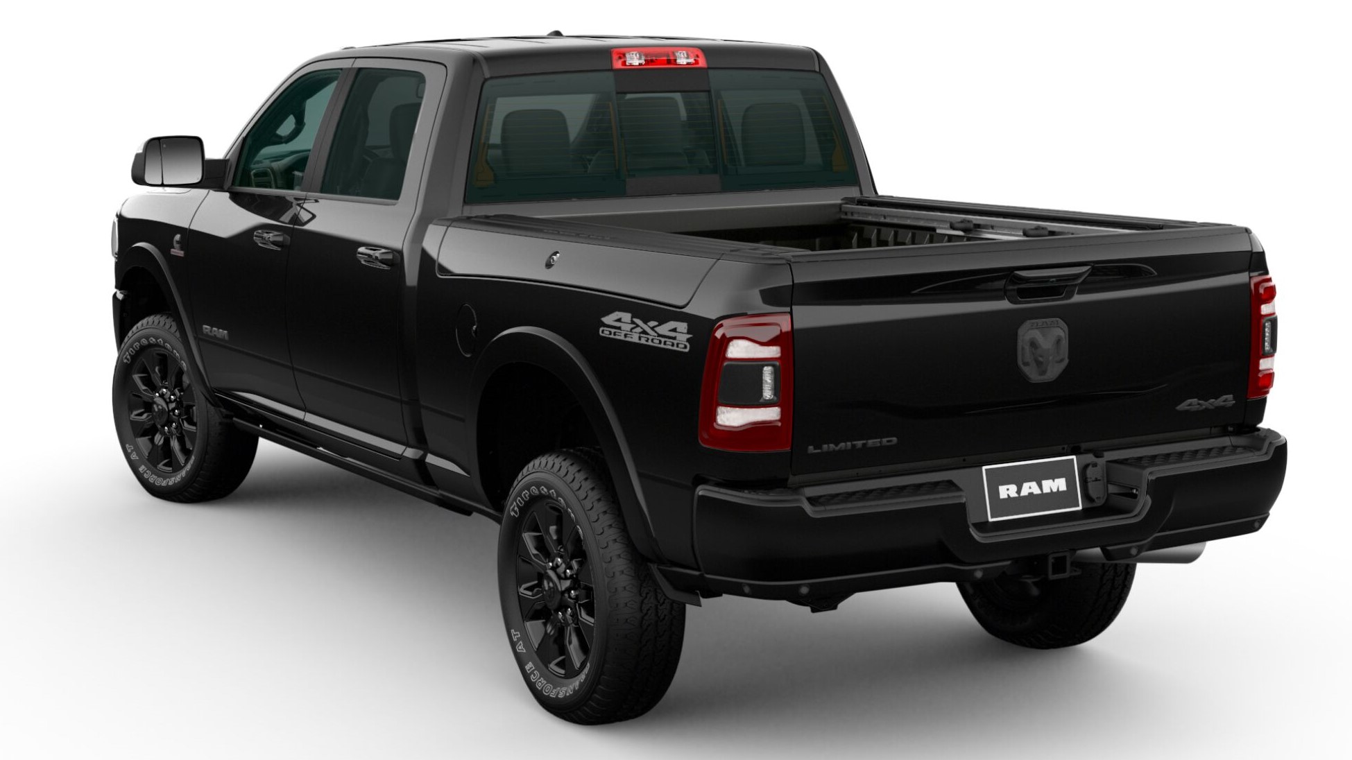 The Limited Black Appearance Package is available on 2020 Ram 2500 and 3500 Limited models. The package carries an additional Manufacturer Suggested Retail Price of $995 USD or $ $1,575 CAD. The Limited Black Appearance Package is available on all Limited cab, bed, and drivetrain configurations for both Ram 2500 and 3500.