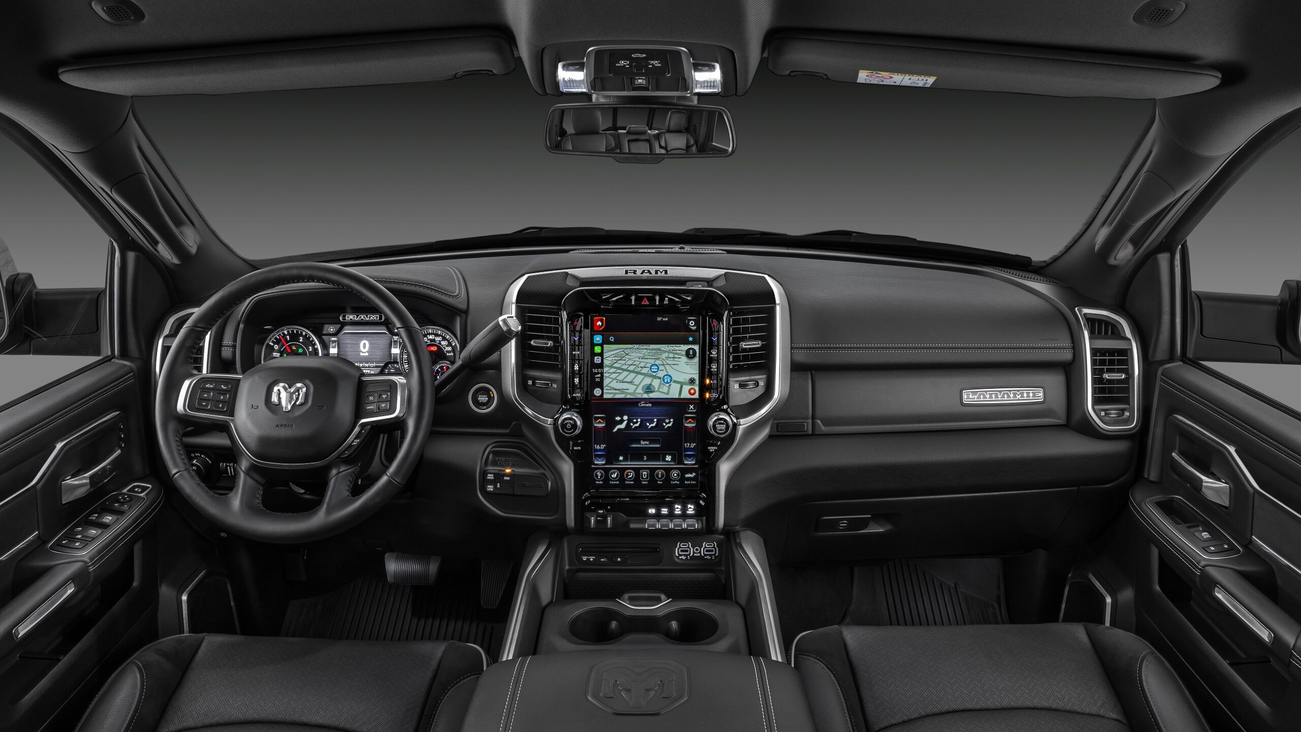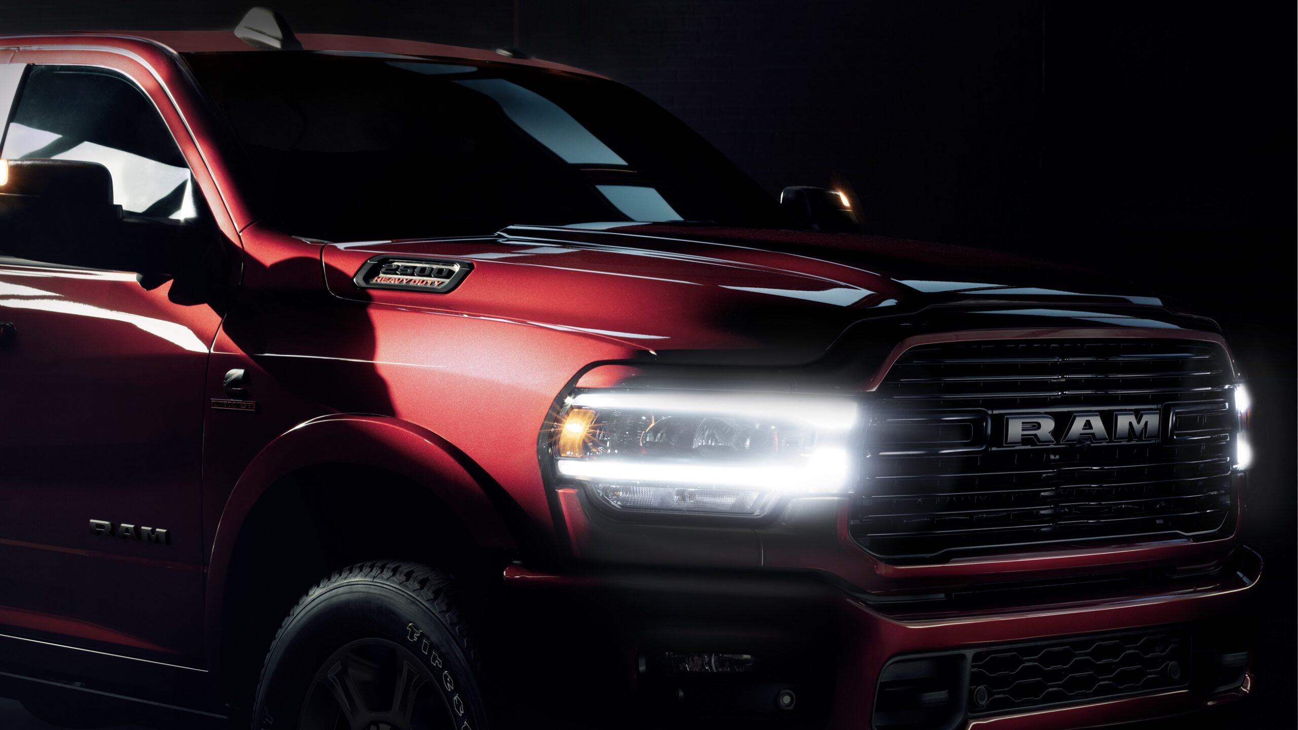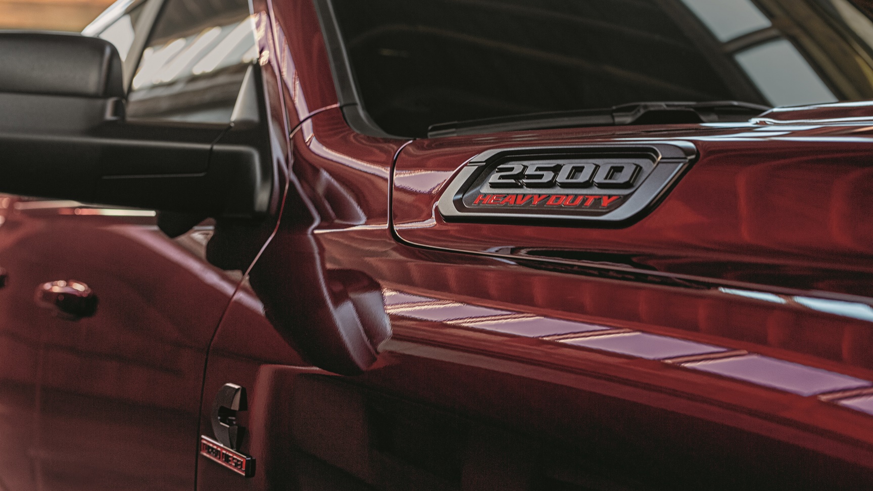 With the updated fourth-generation Ram Heavy Duty’s imposing looks, the renovated pickup has become more aggressive than ever with the new Night Edition package. The package includes dark headlamps, dark taillamps, Gloss Black grille, dark themed mirror covers, black badging, and Gloss Black painted 18-inch aluminum wheels. To complete the darkened theme, the cabin features black materials including ceiling and pillar coverings. Body-colored bumpers also enhance the darker theme.