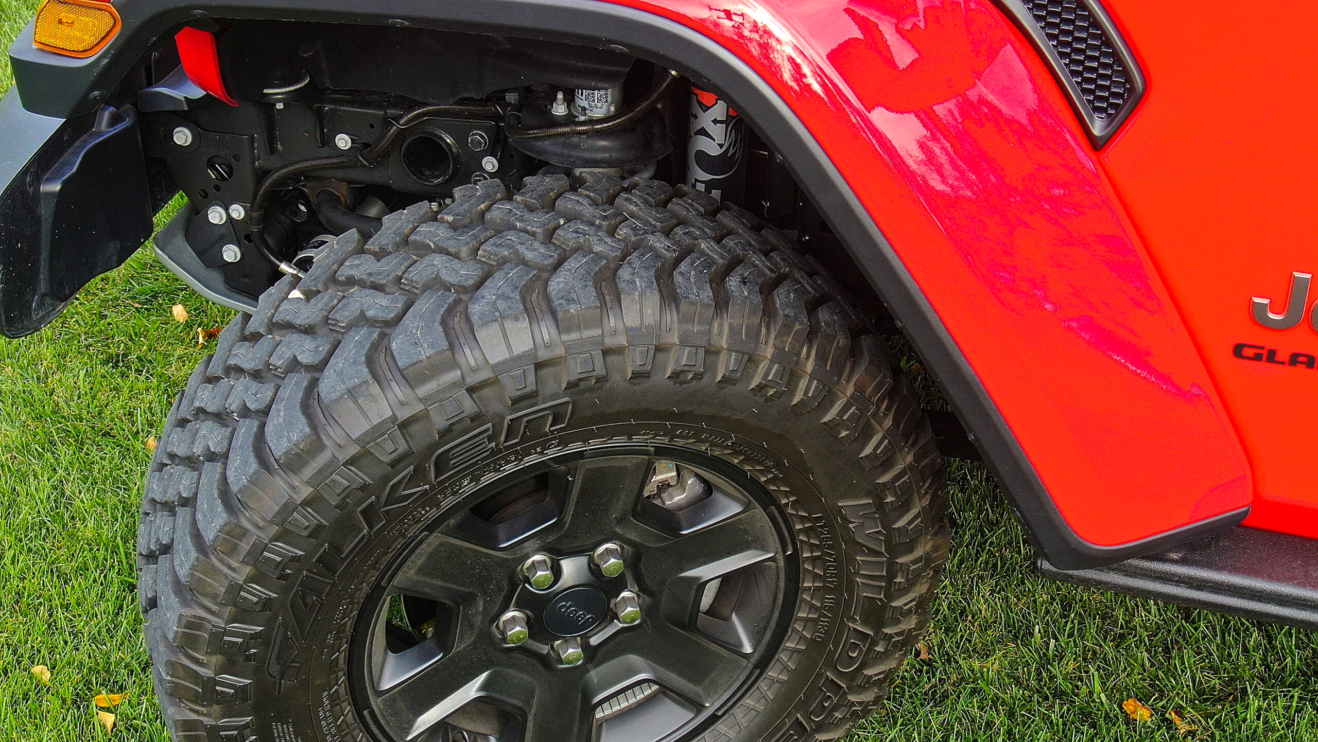 The 1-inch front suspension lift gives the Mojave a 44.7-degree approach angle, which is the best of any Gladiator in the lineup. As for break over angles (20.9-degrees) and ground clearance (11.6 inches) are best in the Gladiator fleet as well. The Rubicon does have a better departure angle by half an inch though.