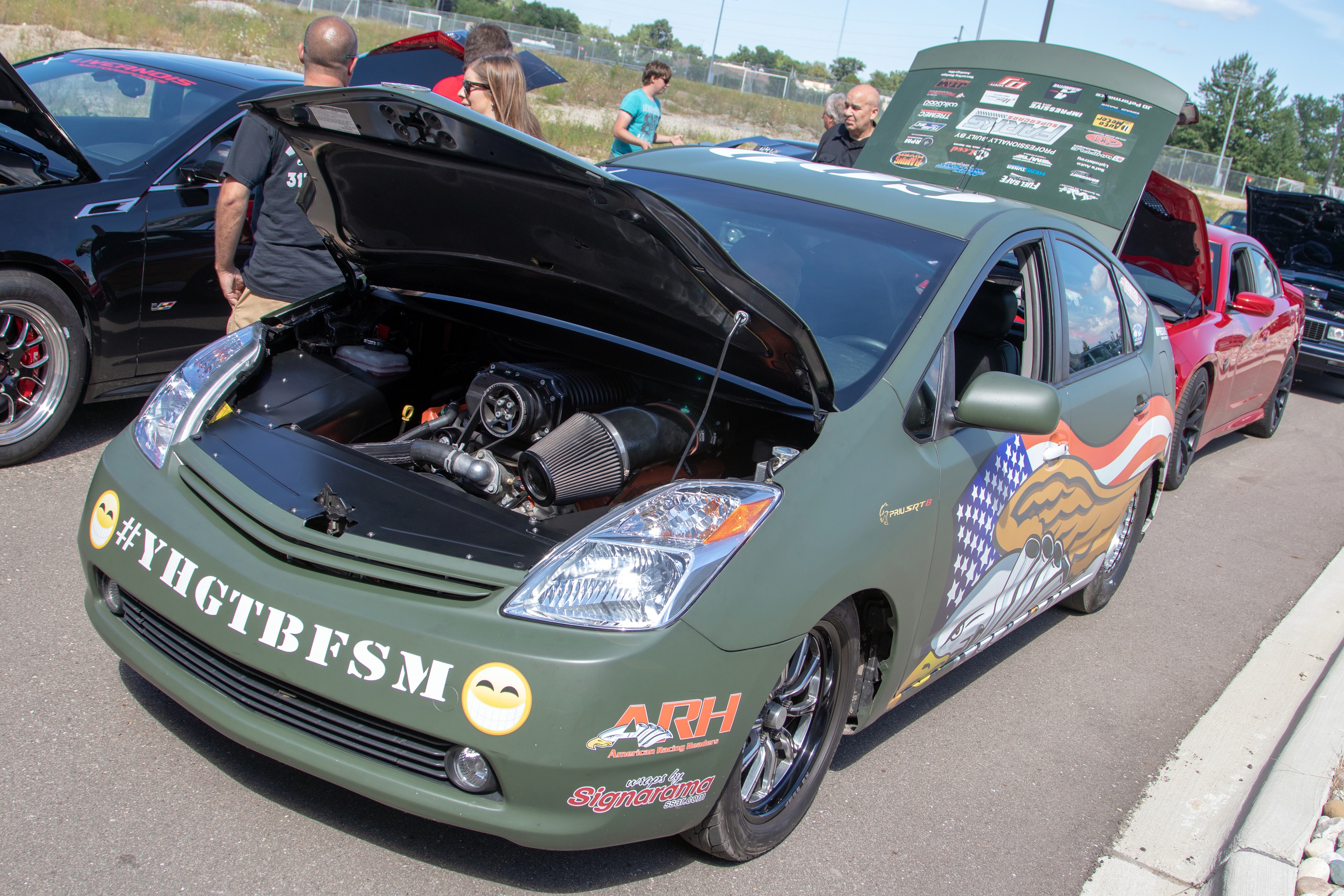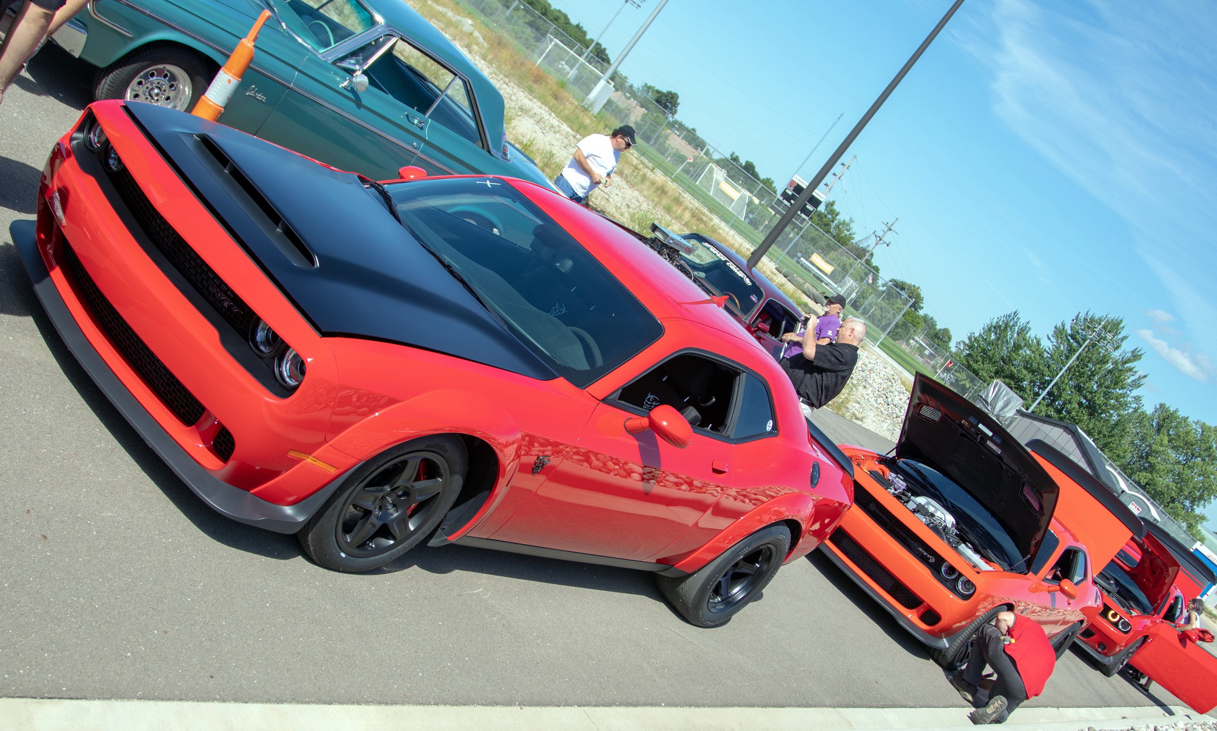 This afternoon we seen a little bit of everything going through tech inspection. We seen a bunch of SRT HELLCATs (in both Challenger and Charger), a couple of SRT Demons, classic Mustangs, Big-Block Camaros, a FIAT 500 Abarth, B-Body Coronets, 60s Chargers with twin turbos and even Nick Filippides from American Racing Headers HELLCAT-powered Prius.