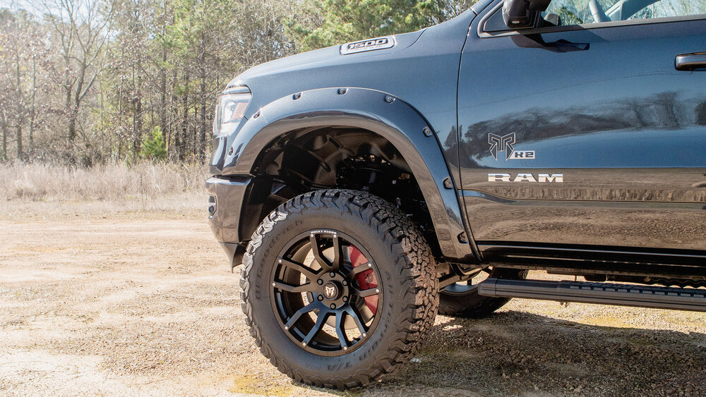 2021 Ram 1500 K2 models are powered by the legendary 5.7-liter HEMI V8 featuring variable-valve timing (VVT) and delivering 395 horsepower and 410 lb.-ft. of torque. Of course, it is paired with the ZF-sourced 8HP75 8-speed automatic transmission. Rocky Ridge also installs an aggressive Gibson performance exhaust system for a great deep rumble.