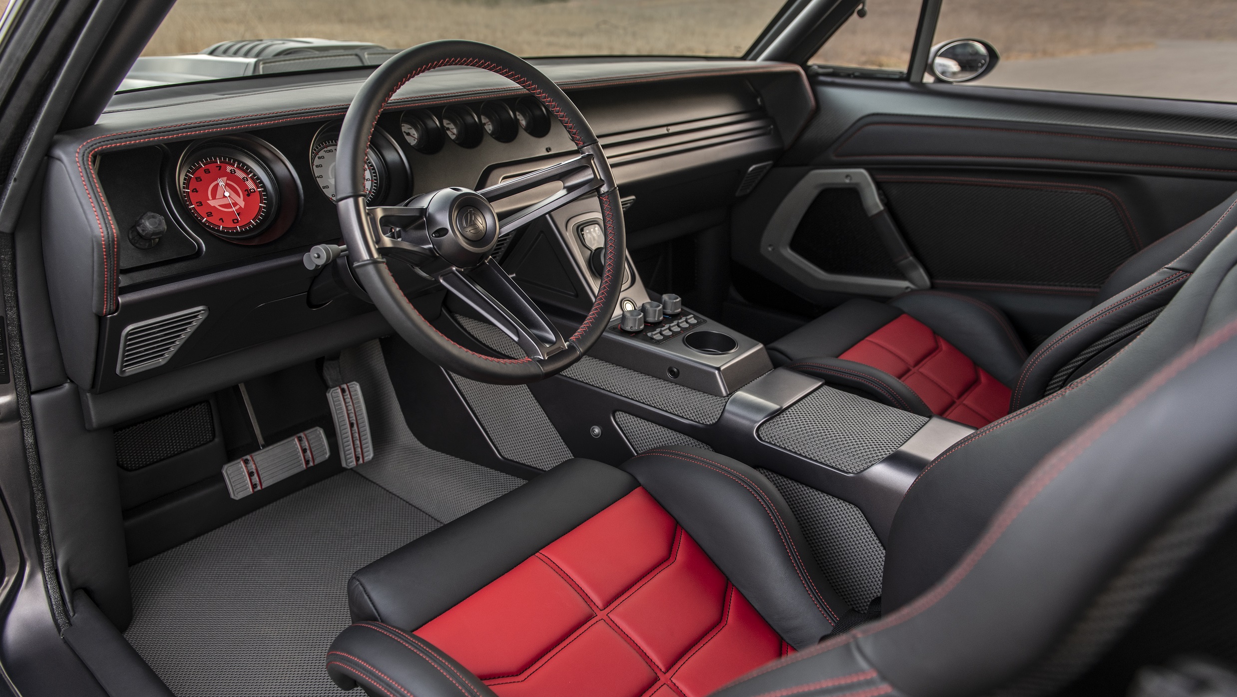 Taking a page from their sinister 1970 Dodge Charger builds of the past which included the 1650 horsepower Mercury Marine V8-powered “Tantrum” and the Demon-powered “Evolution”, the newest Charger build features power from the famed 1,000 horsepower and 950 lb.-ft. of torque Hellephant crate motor from Mopar. To help put all that power to the ground is the ZF-sourced 8HP90 8-speed automatic found in the 2021 Dodge Charger SRT Hellcat Redeye Widebody and a Gear Effects Ford 9-Inch rear end.