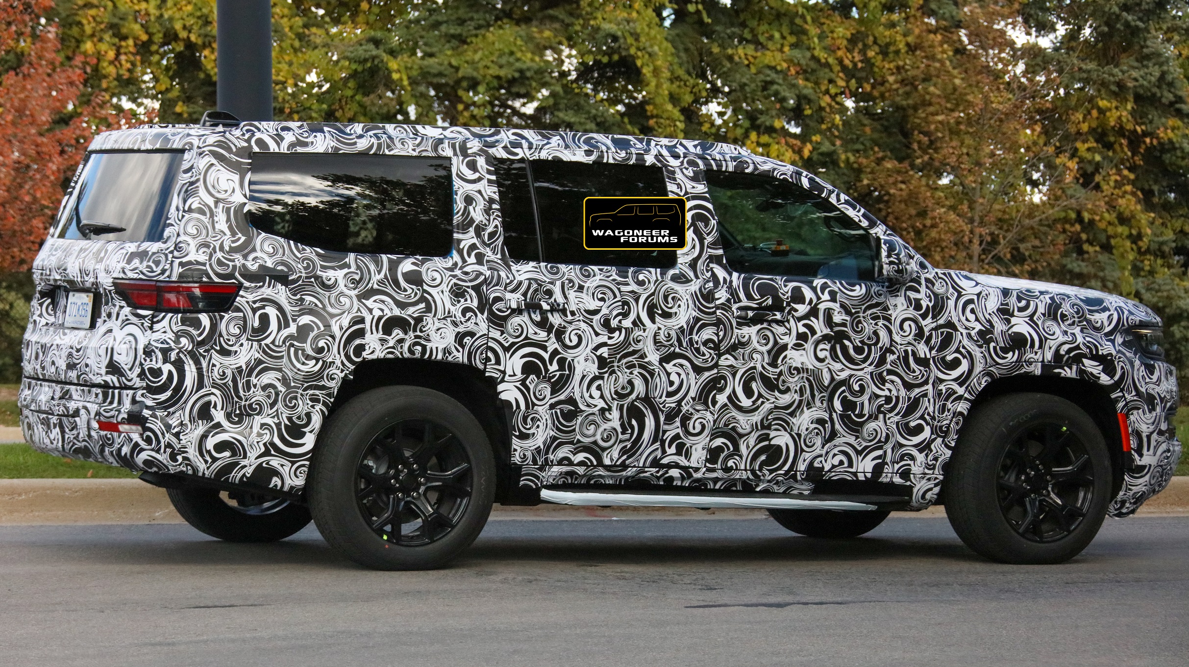 From the side, the overall shape of the sheet metal appears to be the same. We can see both models feature roof rails, but we can tell that the Grand Wagoneer features a set of chrome rails, while the Wagoneer’s are too camouflaged to tell. But we wouldn’t be surprised if they were painted black.