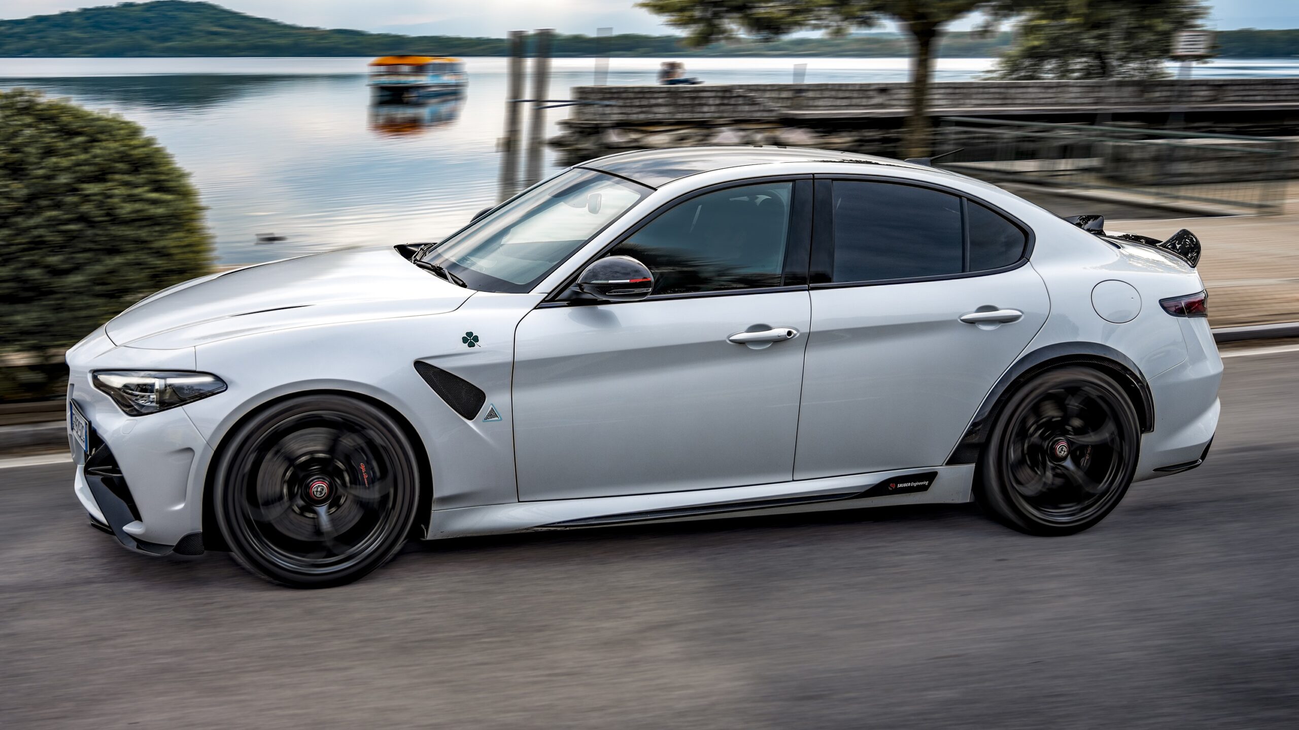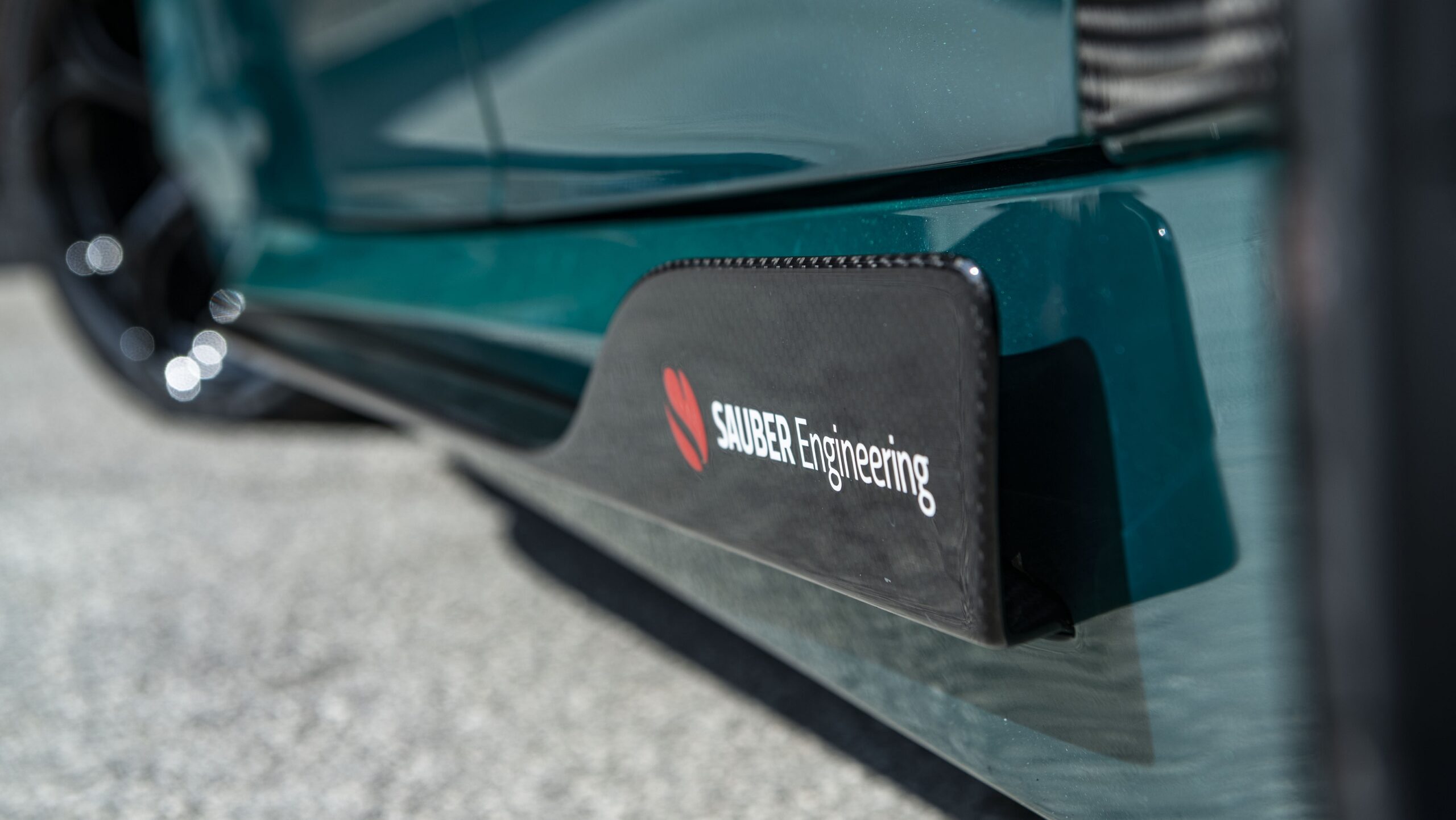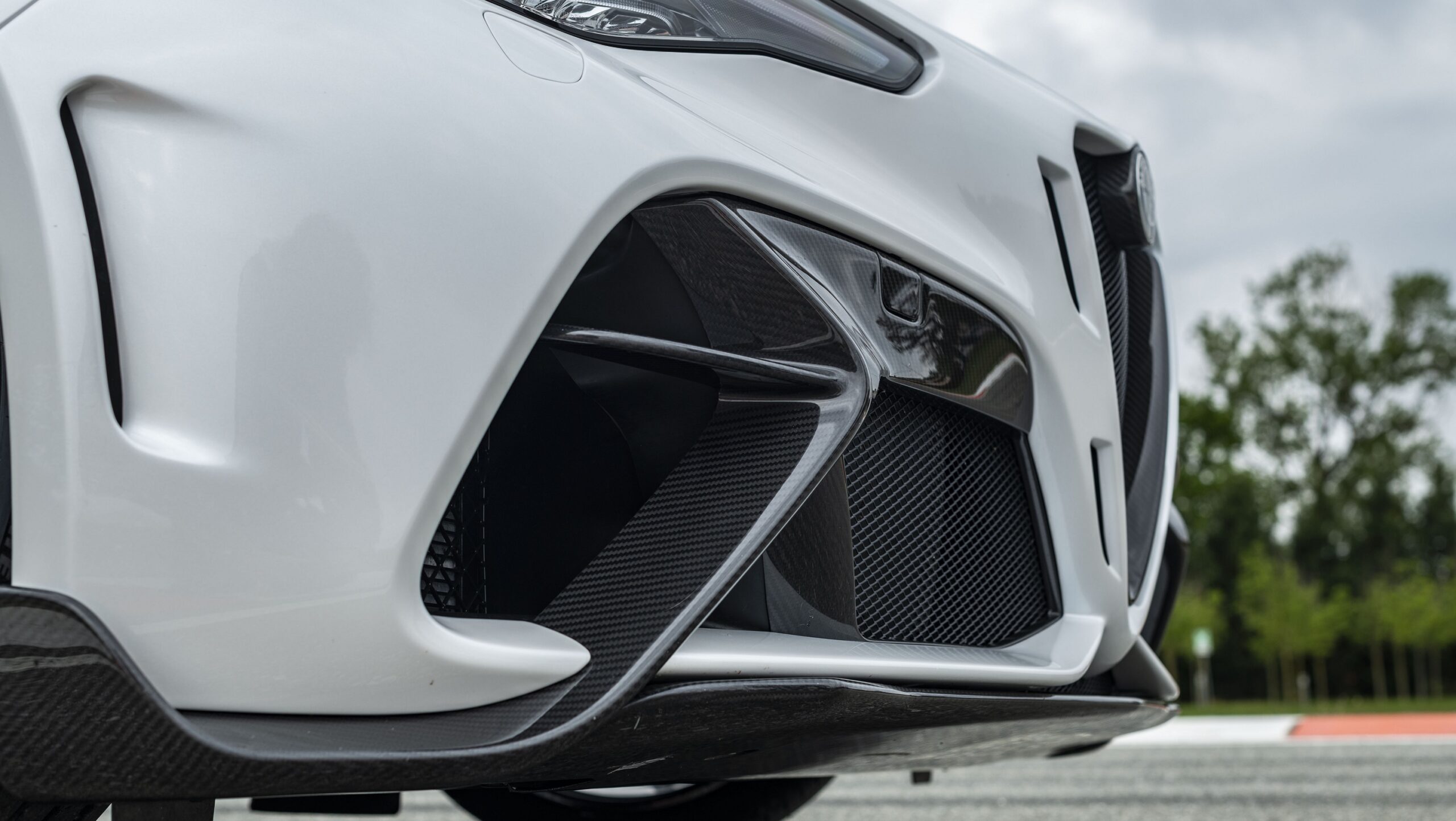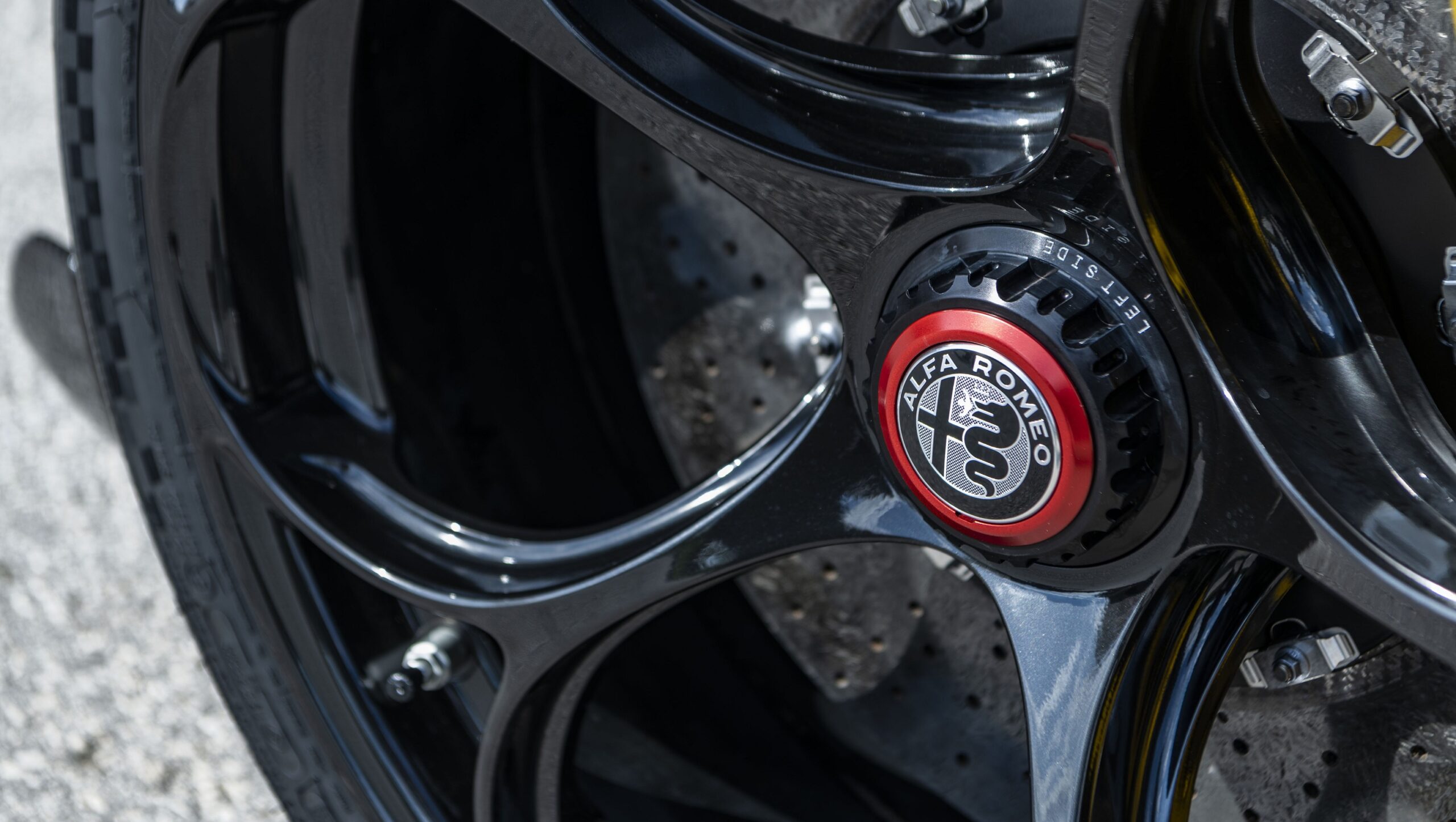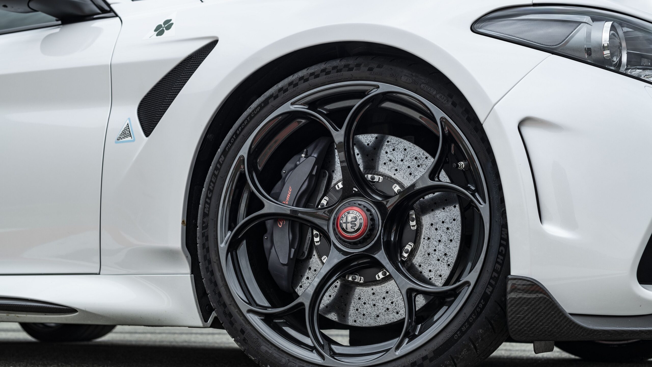 Sauber Engineering was entrusted with the aerodynamic appendages including the new rear spoiler (adjustable to 4 positions in the GTAm), and the active front splitter, which can be extended for use on the track (up to 40 mm) on the GTAm. Other features developed include the titanium Akrapovič central exhaust system, built into the carbon fiber rear diffuser, and the 20-inch wheels featuring a single locking nut (offered for the first time in a sedan), wrapped with Michelin Pilot Sport Cup 2 tires.