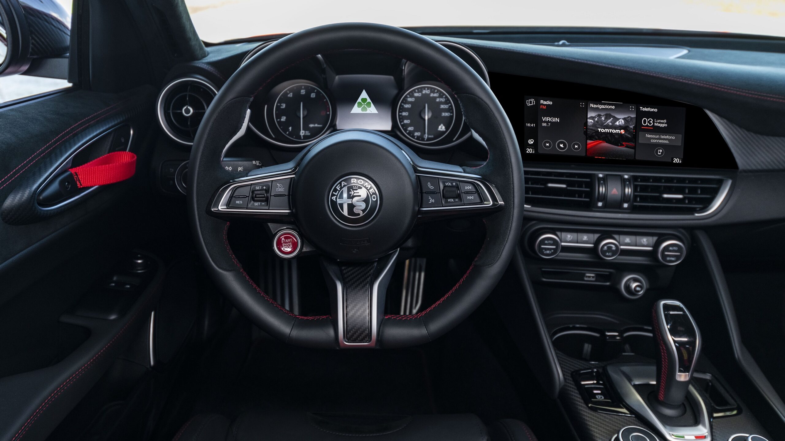Handling has been improved by widening the Quadrifoglio’s front track by 25 mm and their rear by 50 mm, and by developing a specific suspension setup for the suspension systems (the front with two oscillating arms, the rear using independent multilink springs). The specific setup of the suspension and steering ensures higher cut-in and cornering speed and improvements in stability with no impact on comfort on all surfaces.