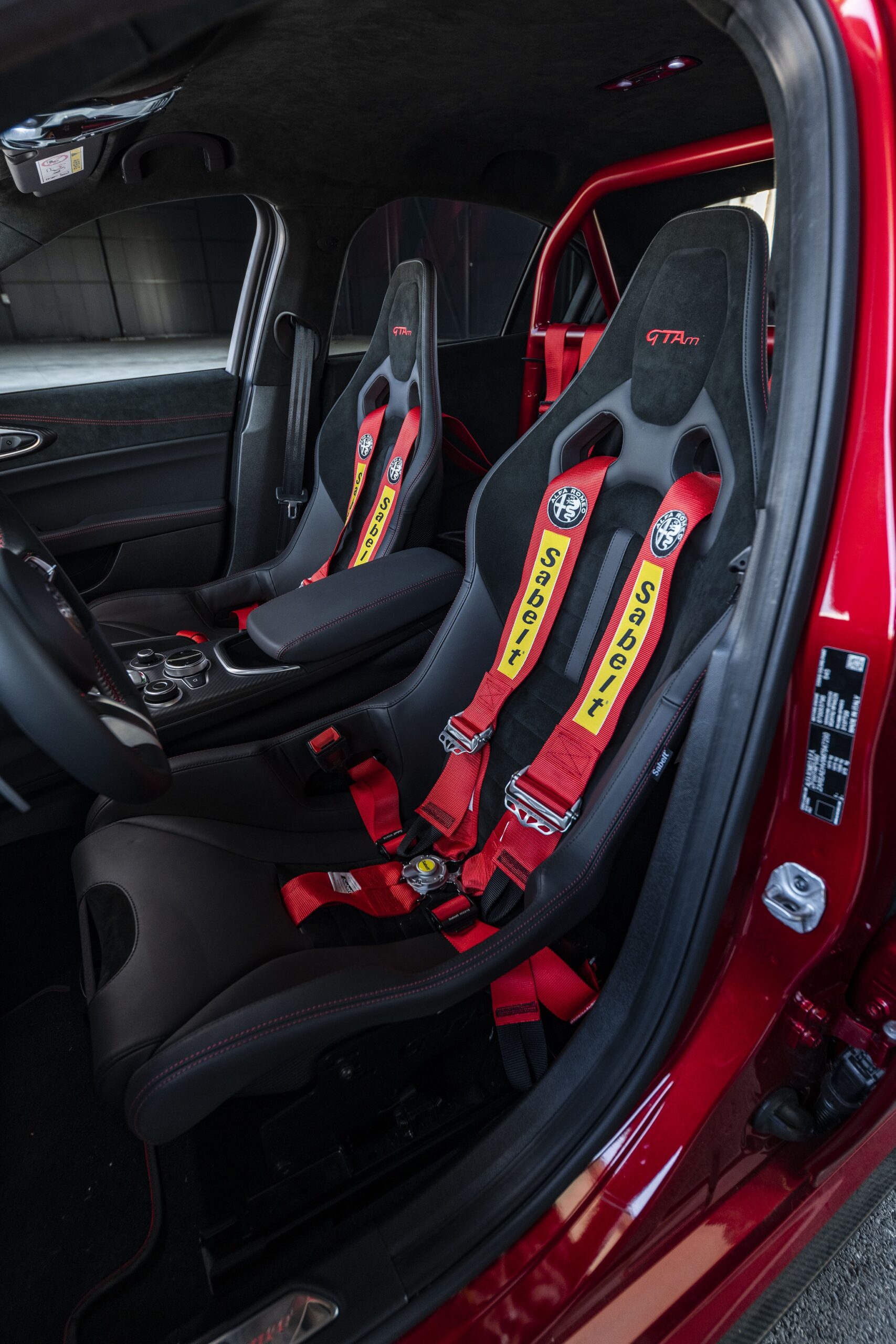 Alfa Romeo will also release a limited number of special liveries produced directly by the Centro Stile Alfa Romeo, recalling history and bringing out the best of Alfa Romeo’s victories and iconography. Once the customized liveries are gone, the Giulia GTA and GTAm will come in either Etna Red, Trophy White, or Montreal Green, a color palette that pays tribute to the Italian flag. Another layer of customization lies in the selection of a color for the brake calipers – including the brand-new gold; and in the interior, the roll bar, seat belts, and stitching.