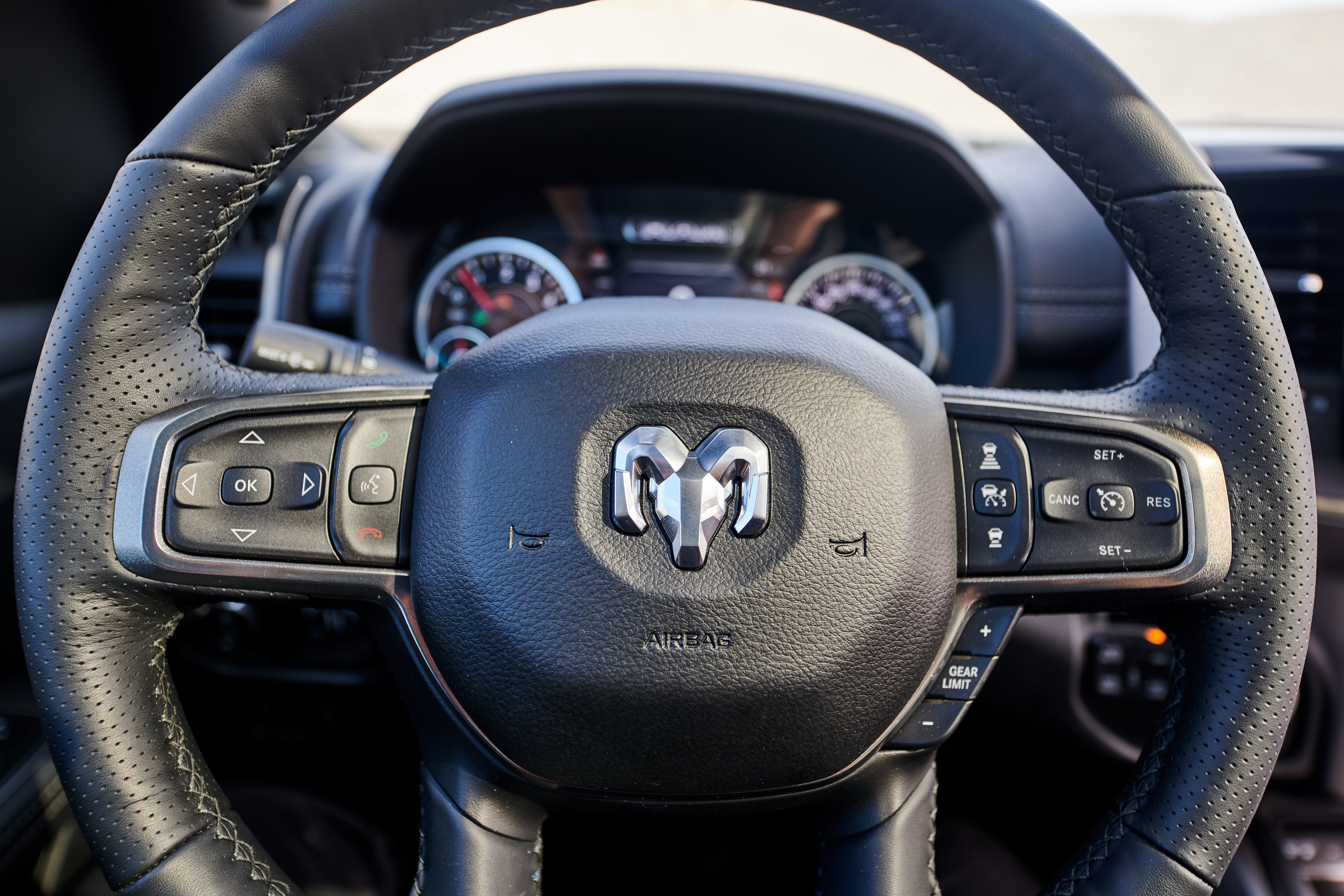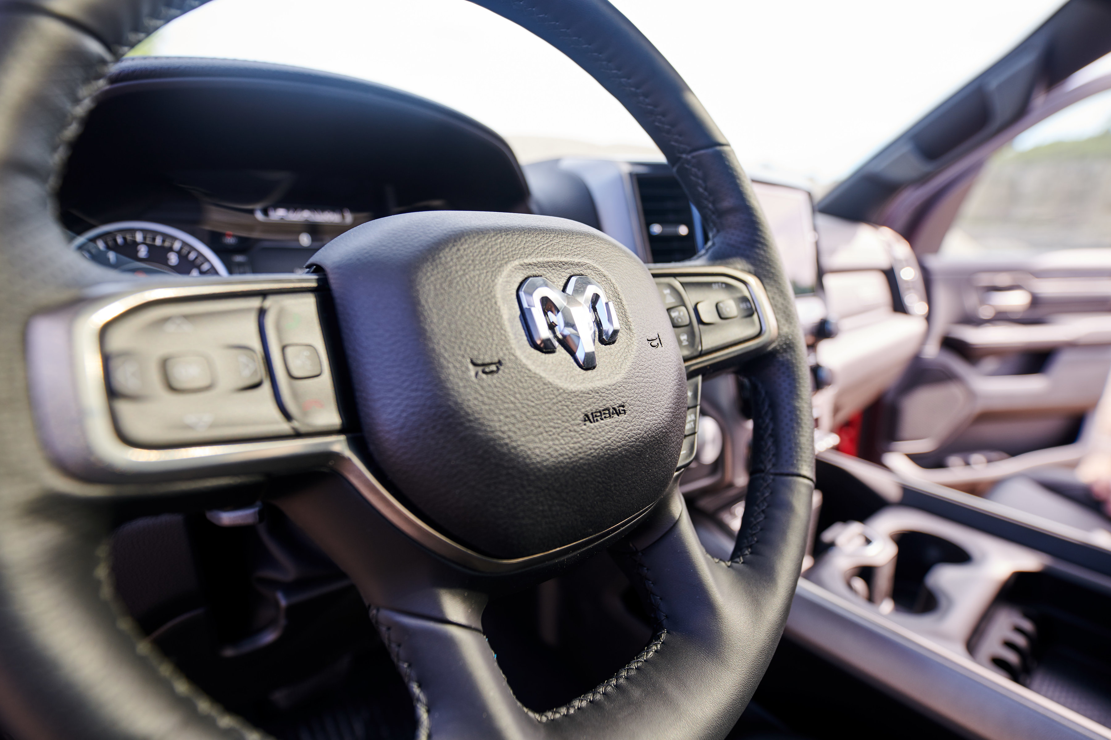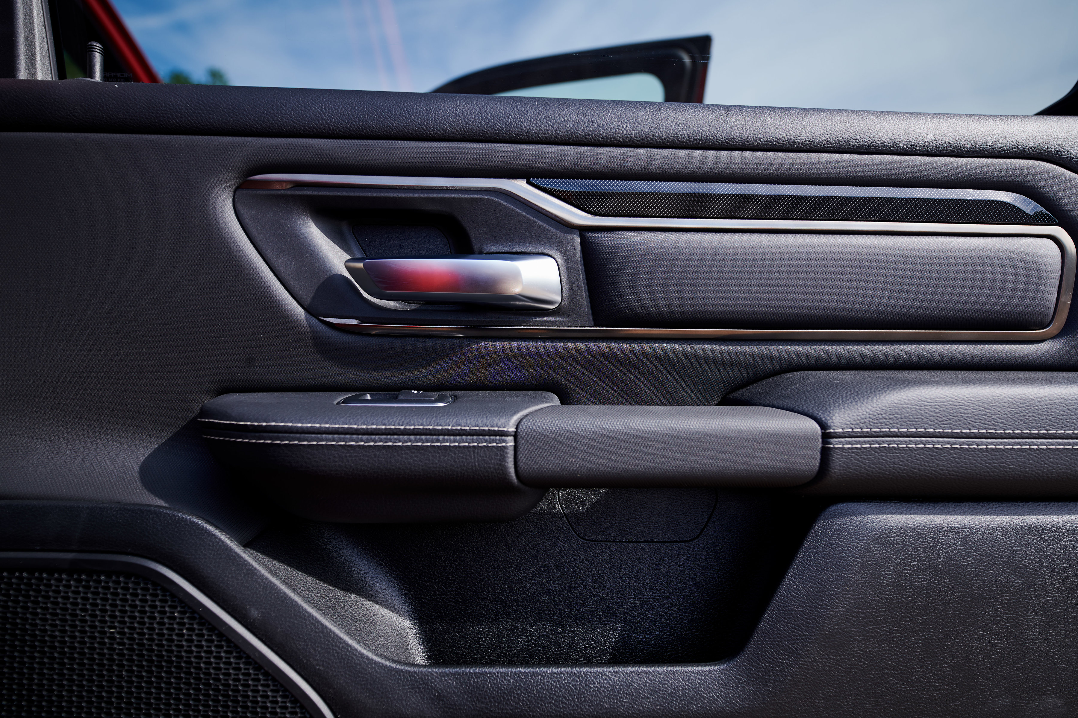 Offered as either a Quad or Crew Cab, the Sport model wears a unique all-new Ram 1500 interior. The all-black cabin with black headliner features an exclusive combination of trim touches, including satin light black chrome highlights, real metal trim and a diamond plate-look on the center stack borrowed from Ram Rebel. The instrument panel and cluster brow are soft-wrapped and features Diesel grey French accent stitching. The closed upper glove box wears a unique ‘Sport’ badge.