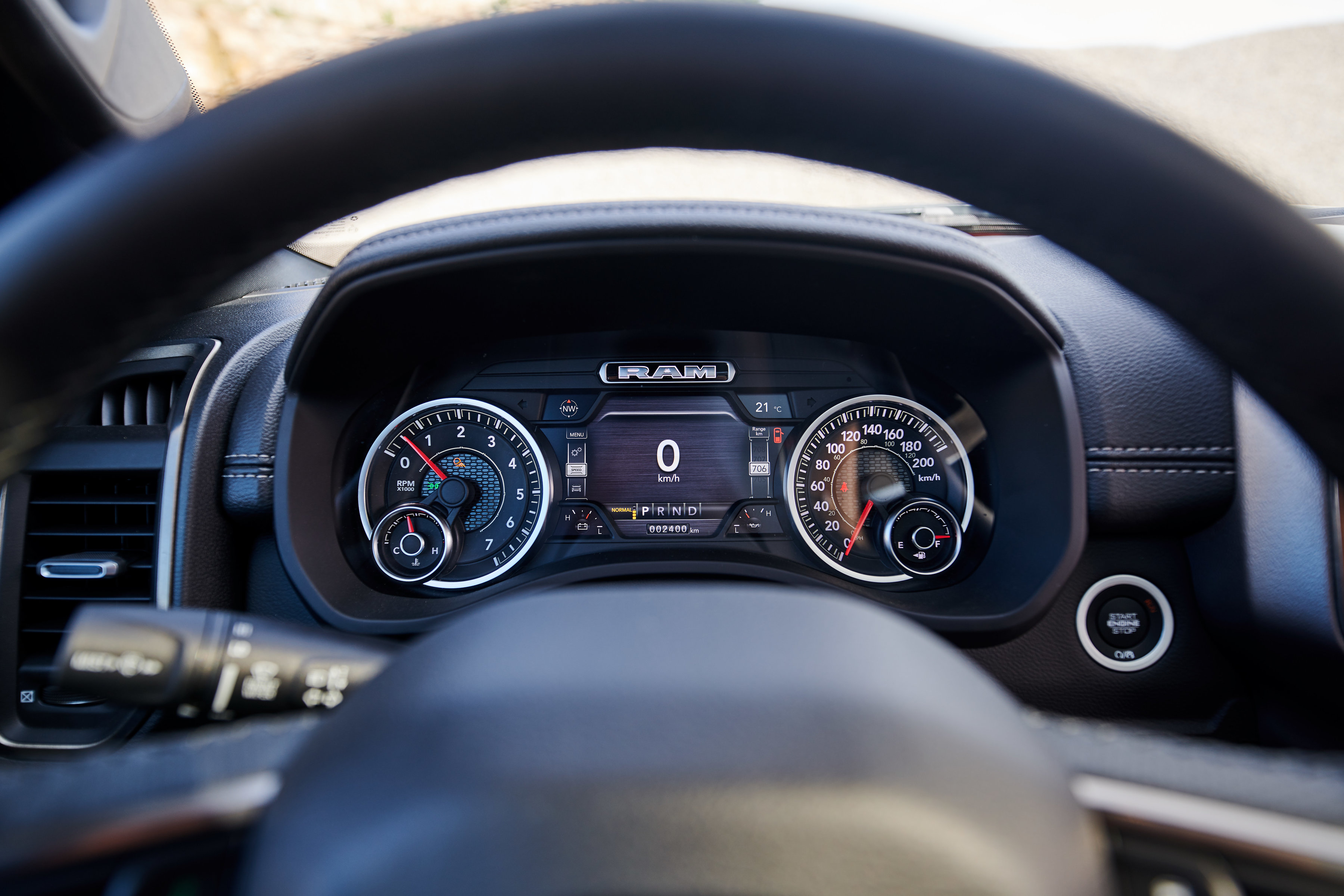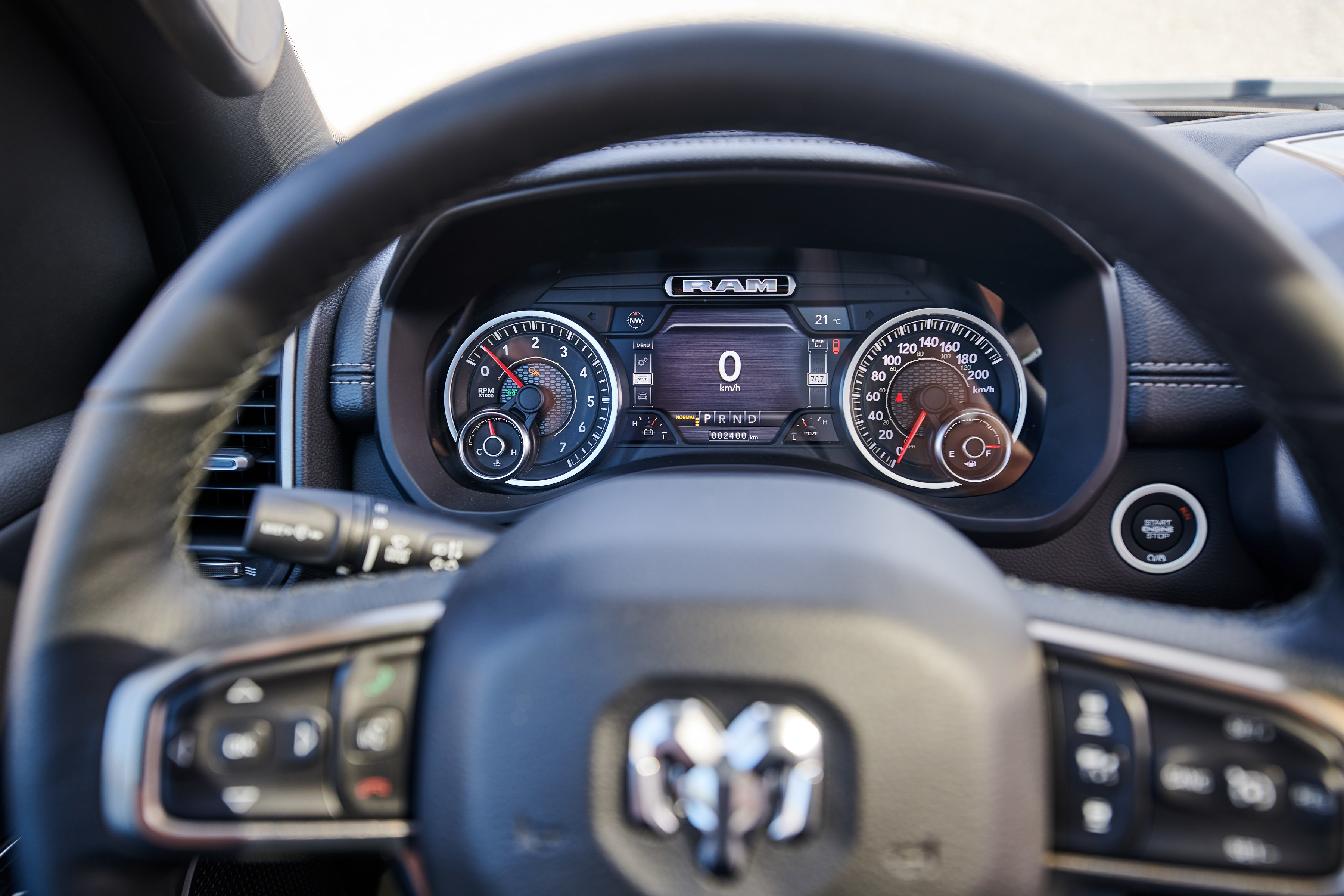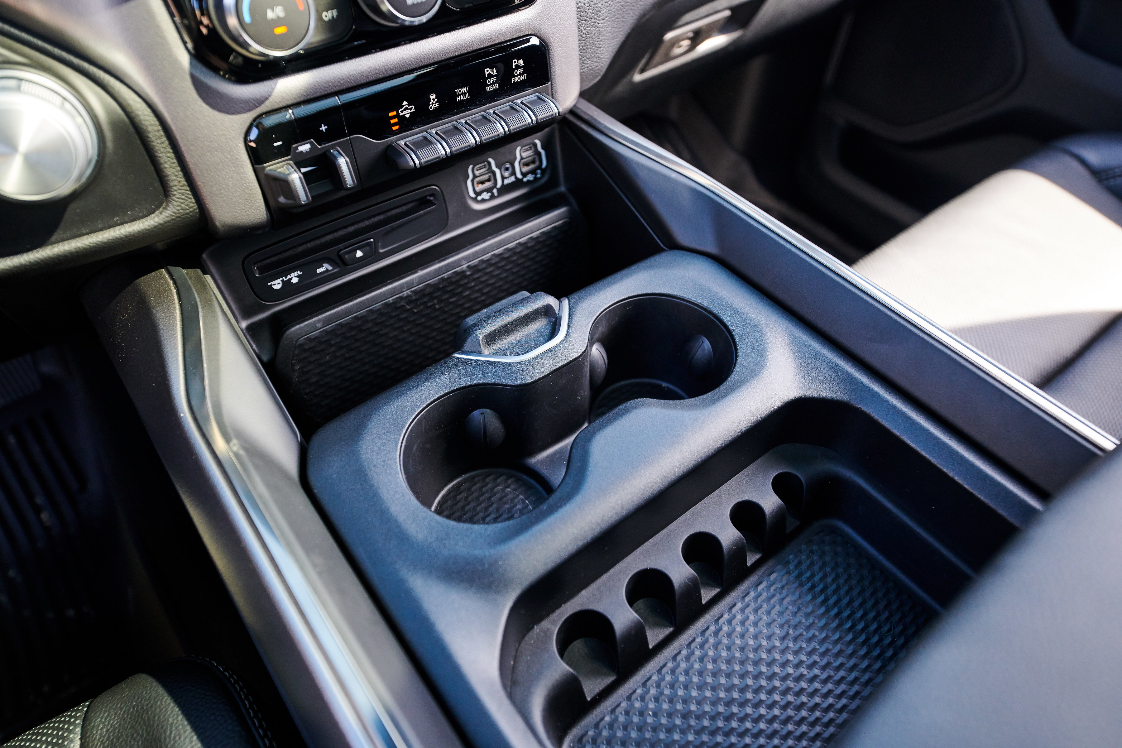 Offered as either a Quad or Crew Cab, the Sport model wears a unique all-new Ram 1500 interior. The all-black cabin with black headliner features an exclusive combination of trim touches, including satin light black chrome highlights, real metal trim and a diamond plate-look on the center stack borrowed from Ram Rebel. The instrument panel and cluster brow are soft-wrapped and features Diesel grey French accent stitching. The closed upper glove box wears a unique ‘Sport’ badge.