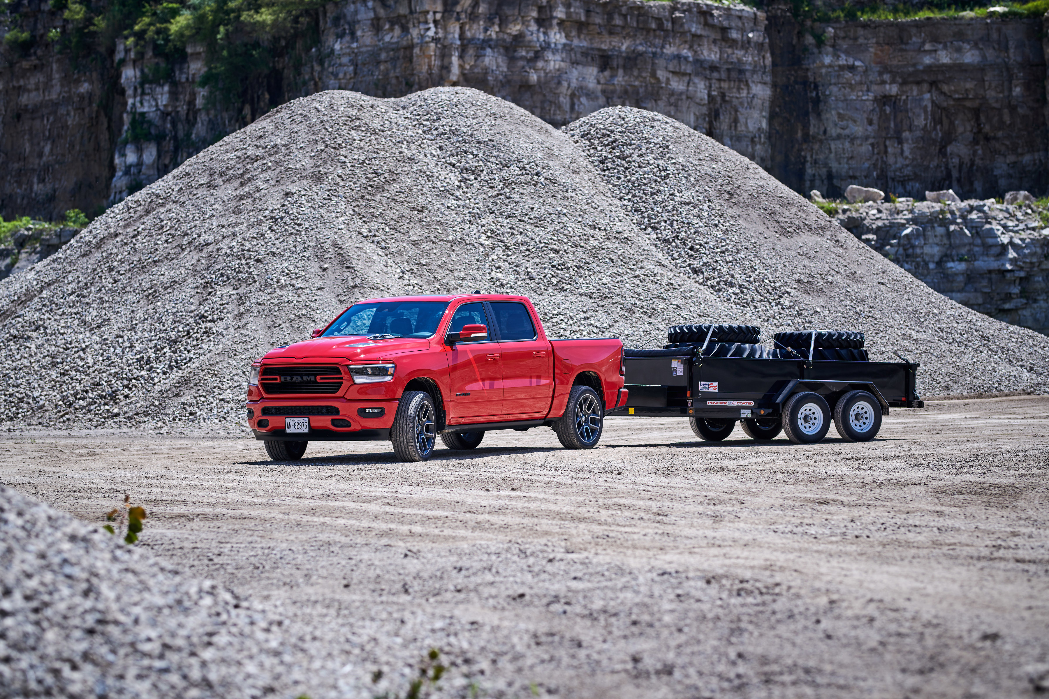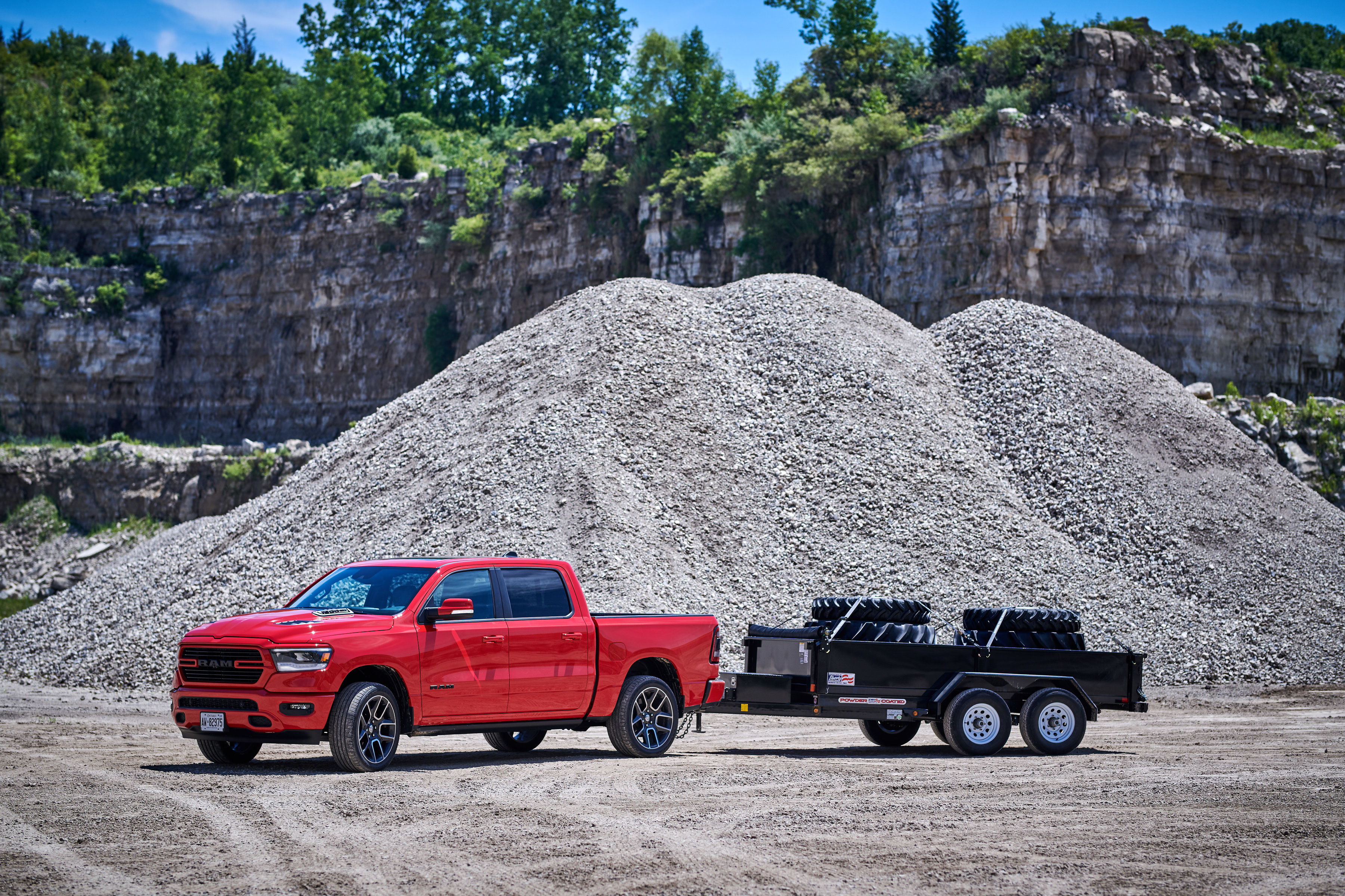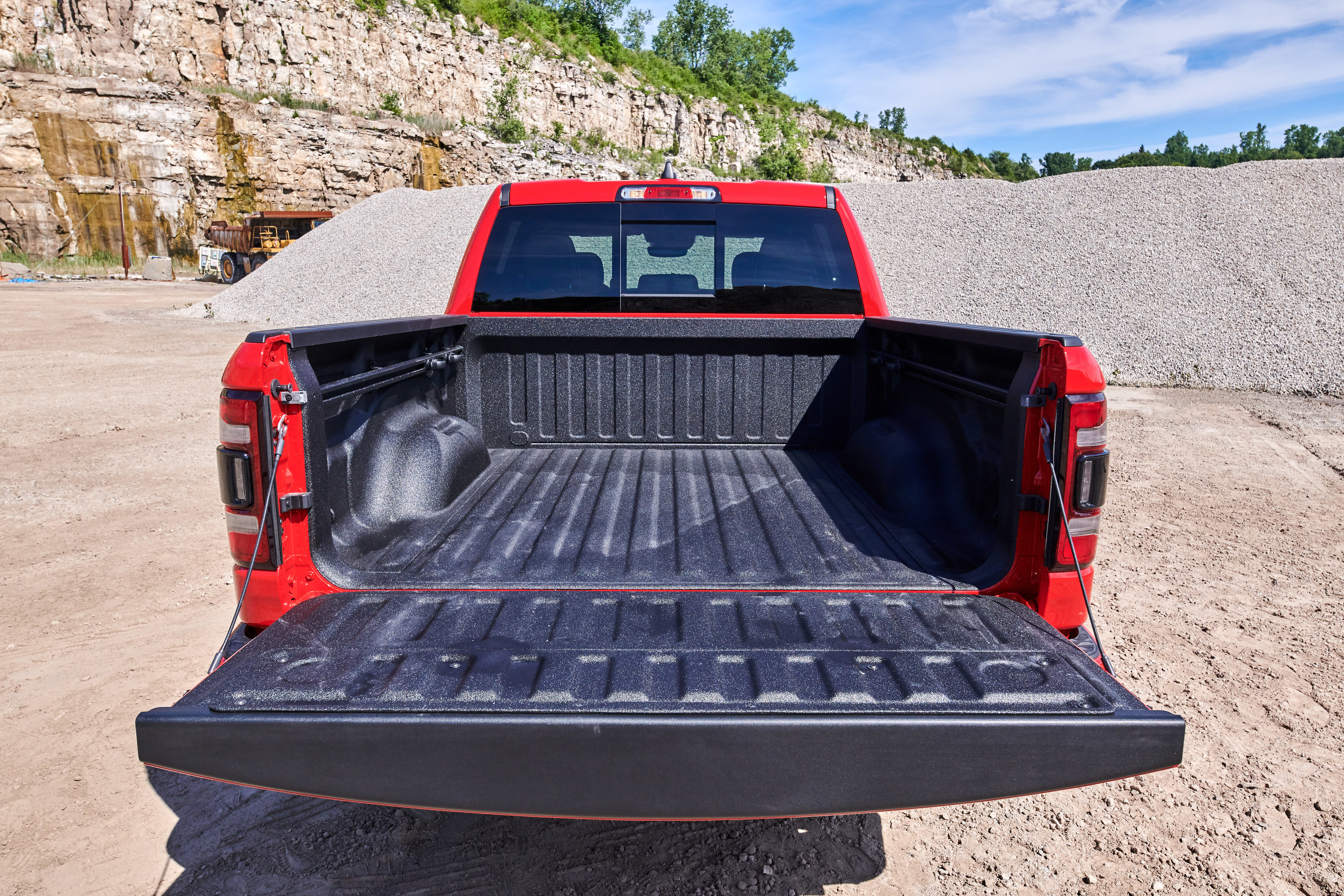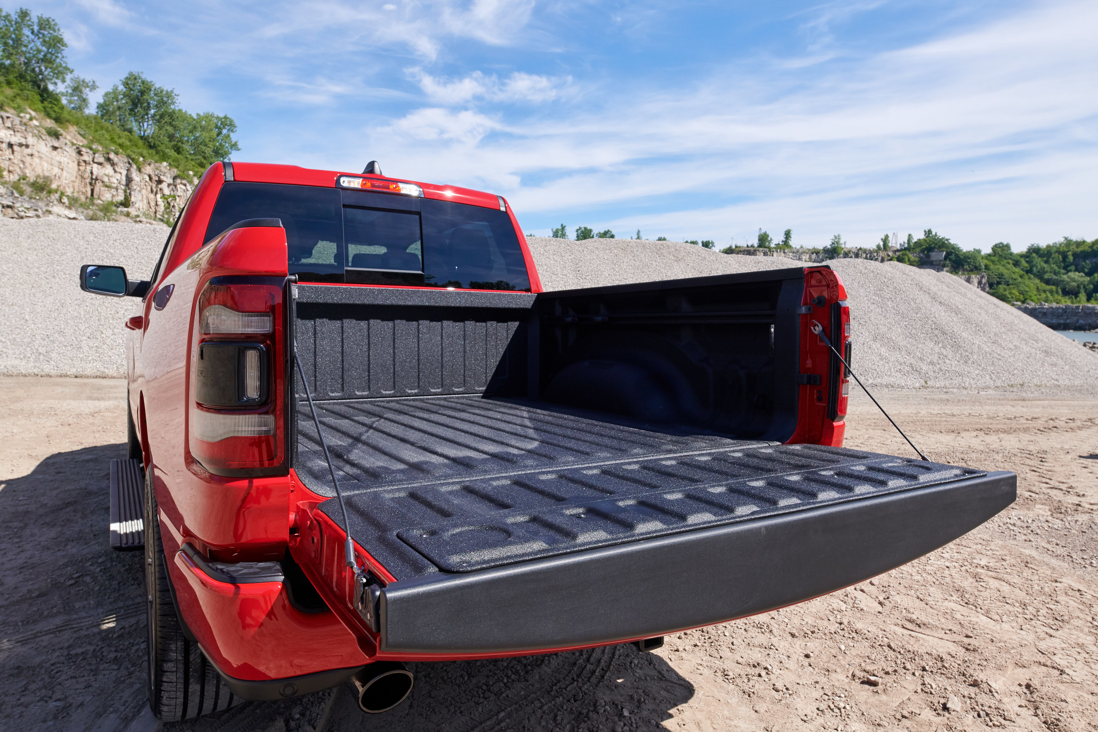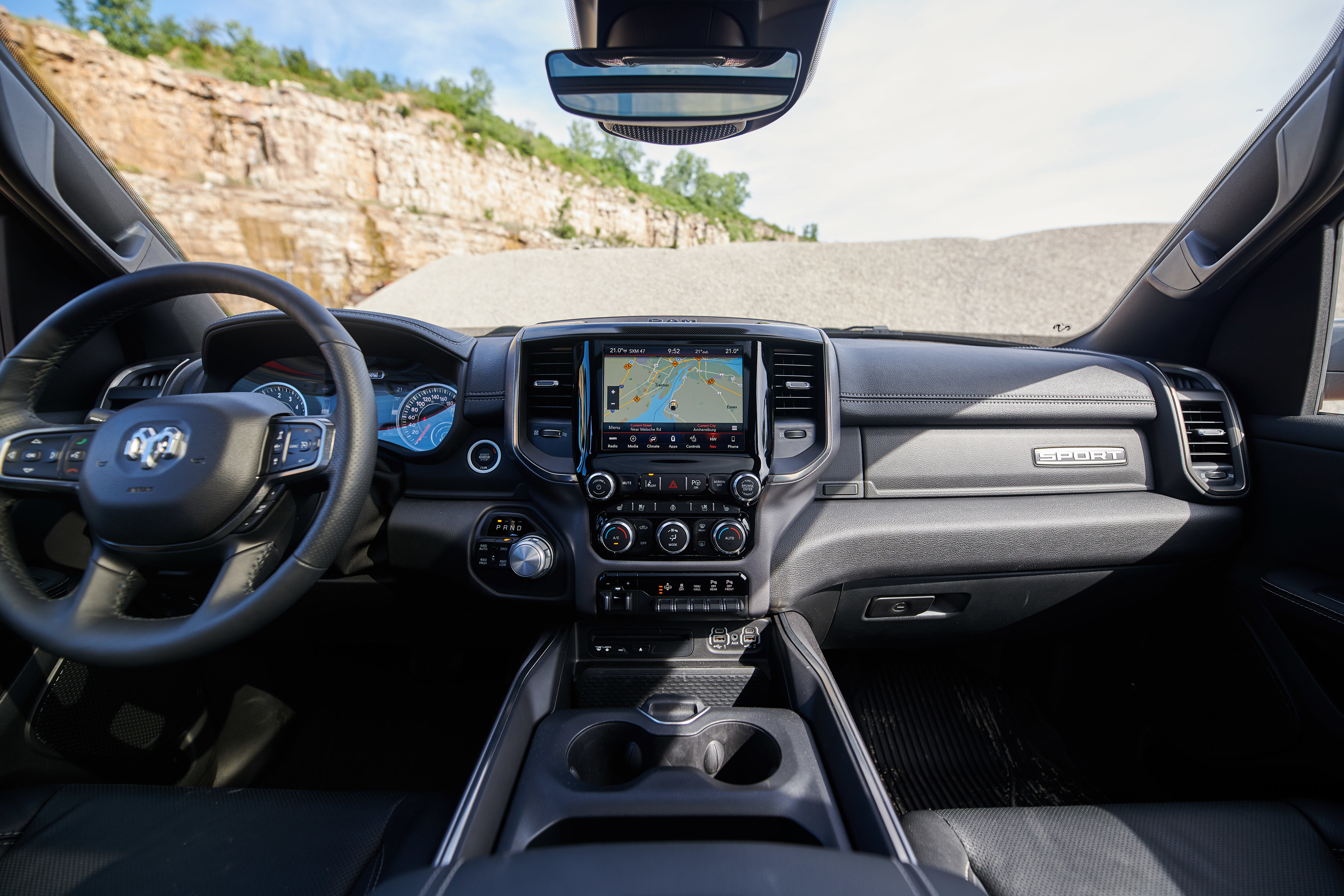 Unique to Canada are power heated sport cloth/premium vinyl seats with a special ‘hex’ insert mesh fabric. Optional leather heated and ventilated seats also feature a unique technical embossed texture reserved only for Canada. The 2019 Ram 1500 Sport comes standard with power adjustable pedals, CD player, heated steering wheel and much more. Every Sport comes standard with Ram 1500’s new reconfigurable console with space for a 15-inch laptop or hanging files, sliding front cupholders, fixed rear cupholders and large storage bins. A dual-pane sunroof is available on Crew Cab models, which also offer a reclining rear seat and a flat rear floor, plus 12.7 cm (5-inch) larger in-floor Ram bins that can accommodate a 4-inch drop hitch.