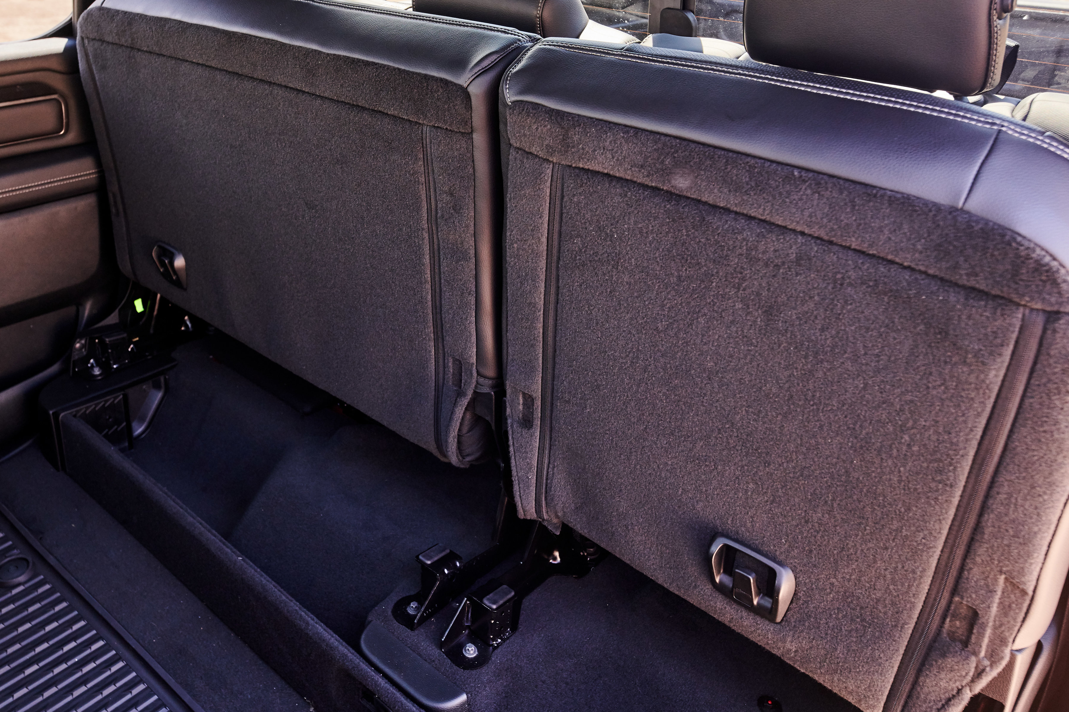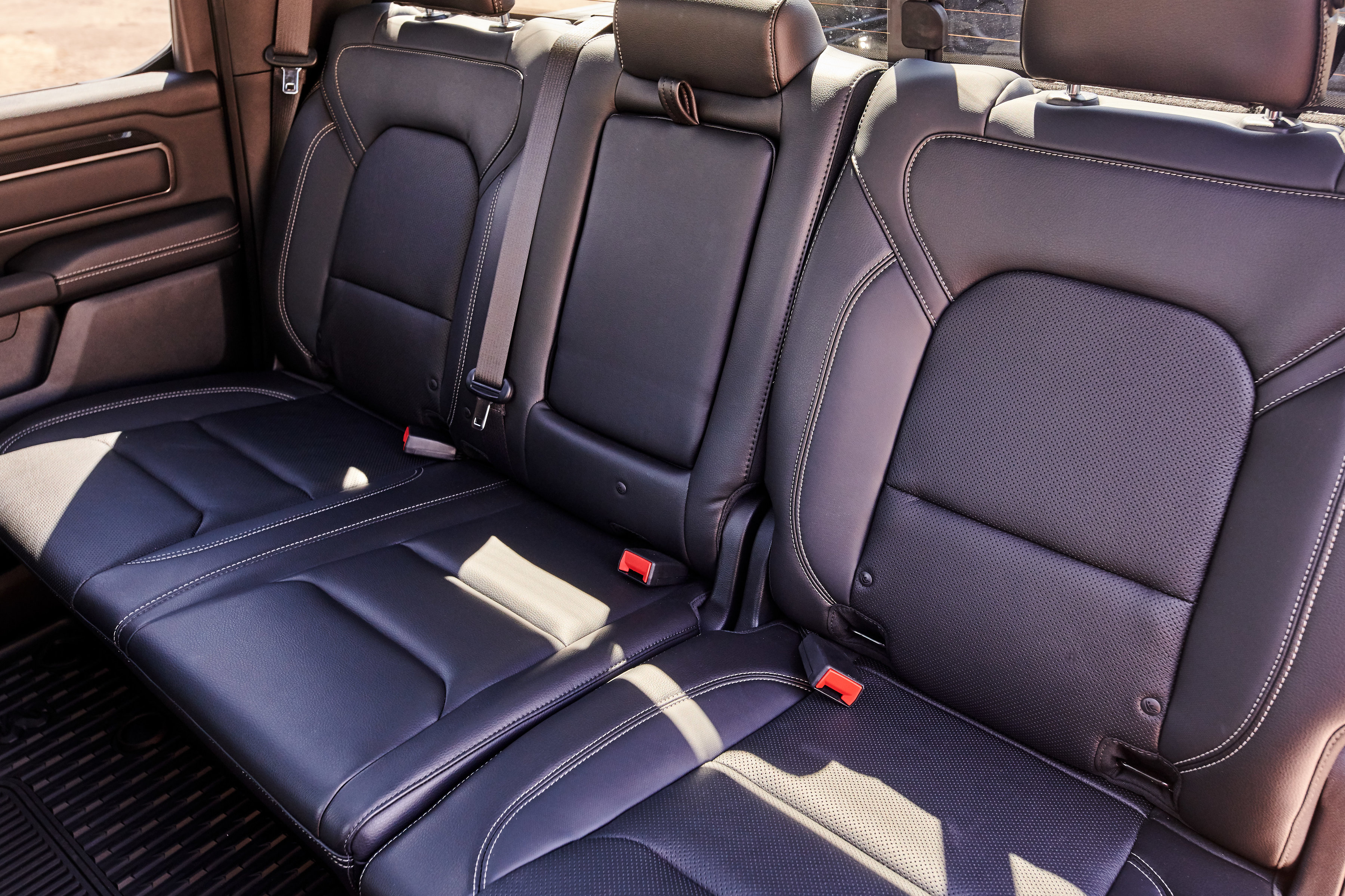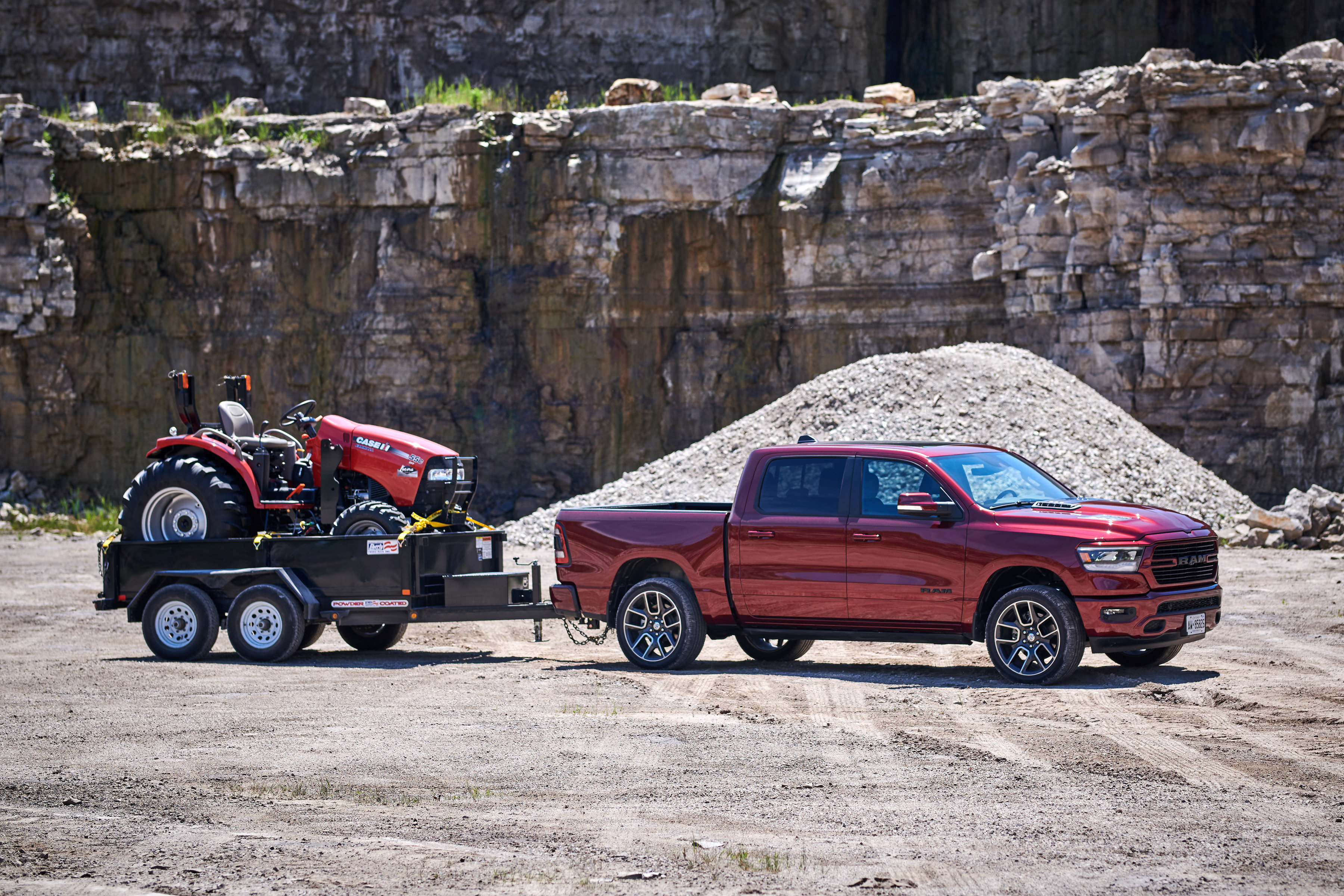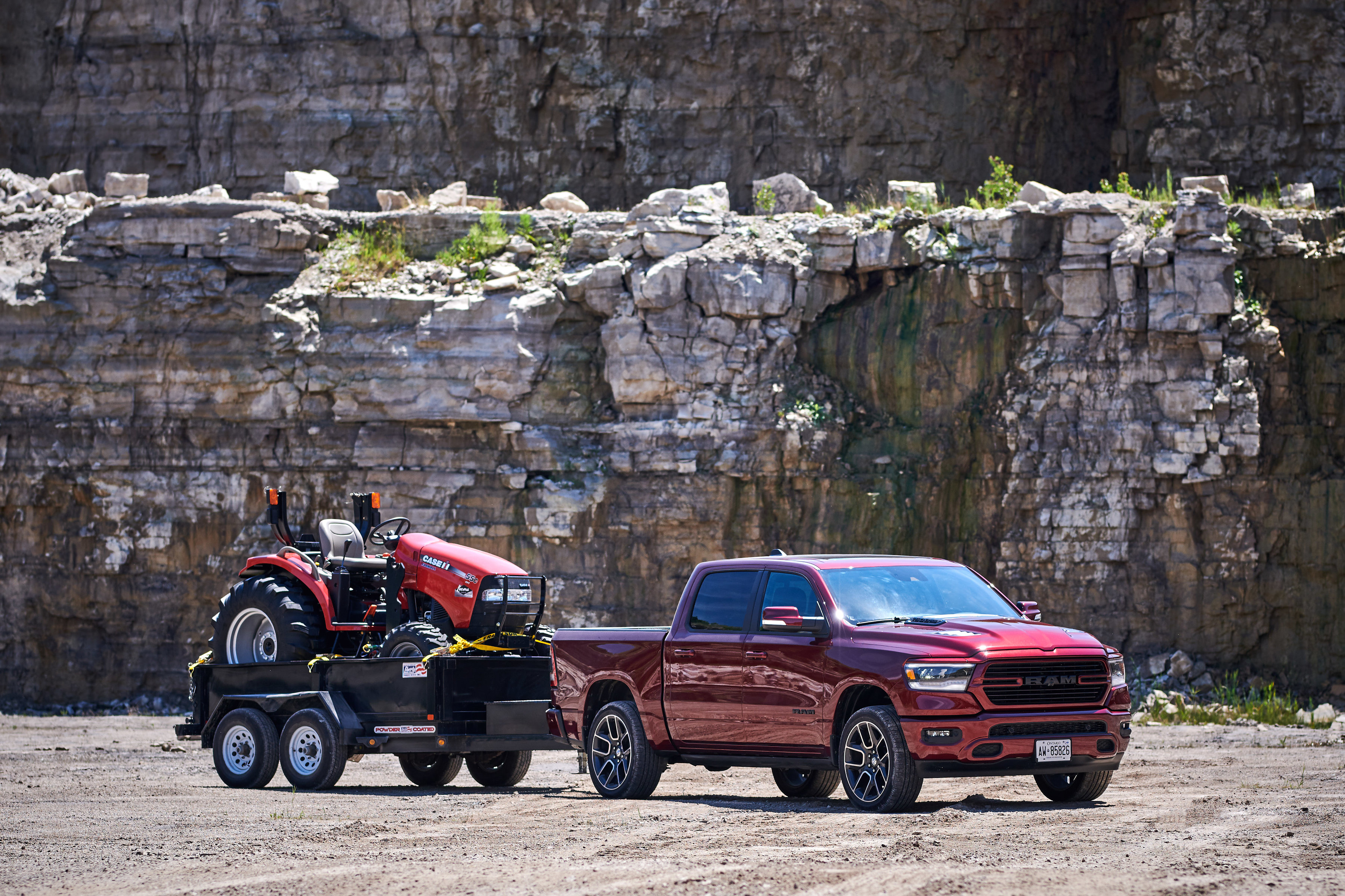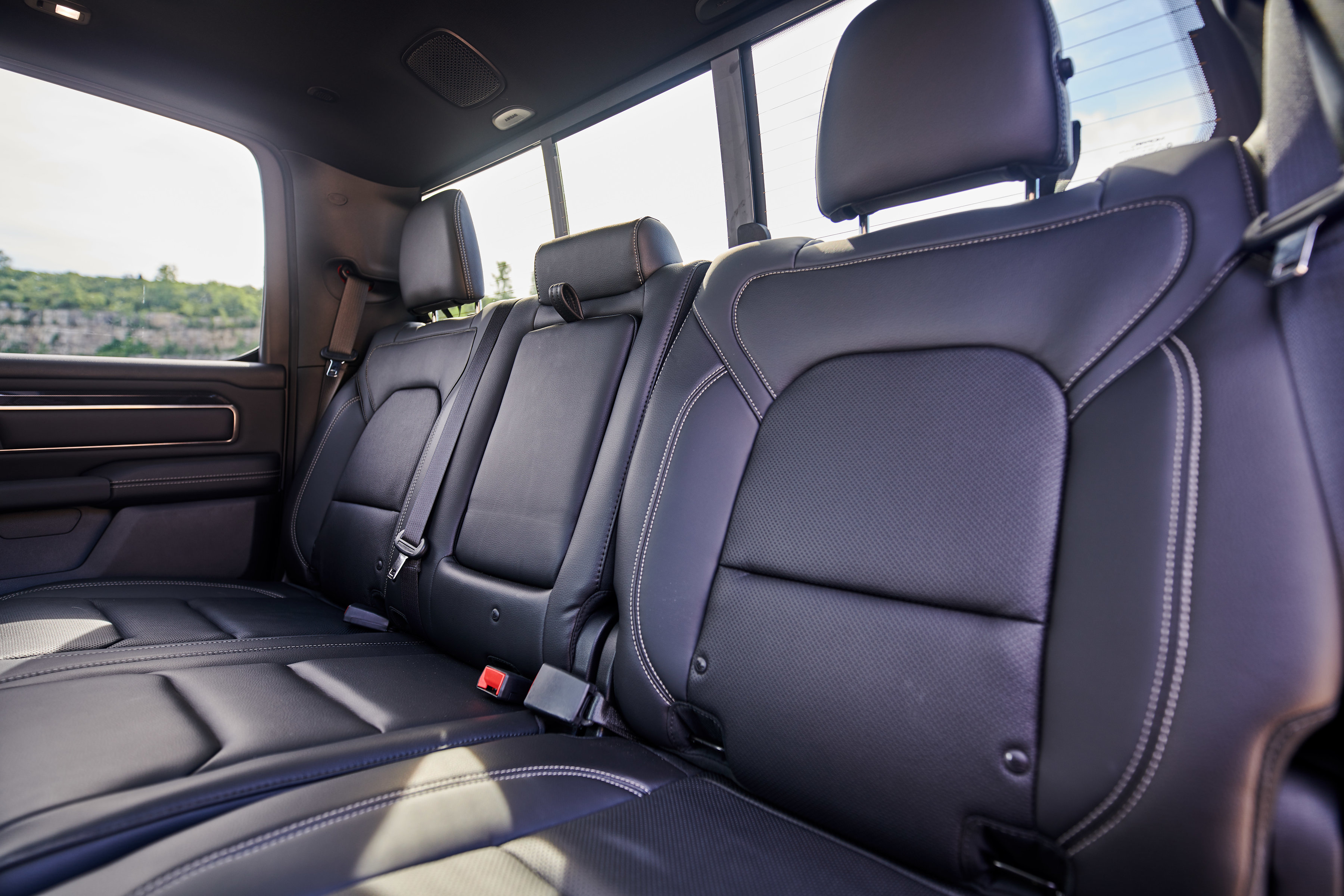 Unique to Canada are power heated sport cloth/premium vinyl seats with a special ‘hex’ insert mesh fabric. Optional leather heated and ventilated seats also feature a unique technical embossed texture reserved only for Canada. The 2019 Ram 1500 Sport comes standard with power adjustable pedals, CD player, heated steering wheel and much more. Every Sport comes standard with Ram 1500’s new reconfigurable console with space for a 15-inch laptop or hanging files, sliding front cupholders, fixed rear cupholders and large storage bins. A dual-pane sunroof is available on Crew Cab models, which also offer a reclining rear seat and a flat rear floor, plus 12.7 cm (5-inch) larger in-floor Ram bins that can accommodate a 4-inch drop hitch.