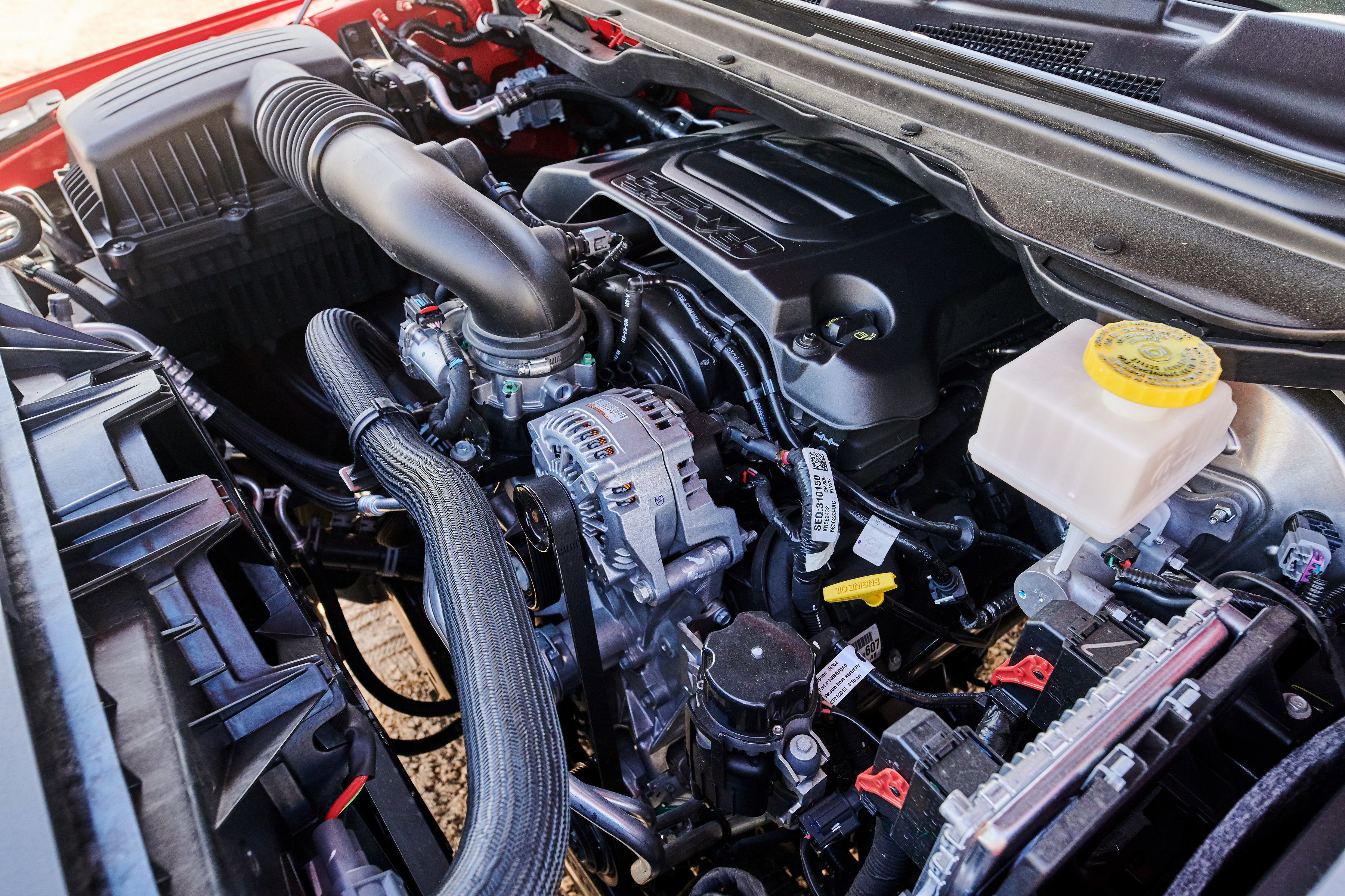 The 5.7-liter HEMI V-8 is standard on Ram 1500 Sport. It combines the muscle of 395 horsepower and 410 lb-ft of torque with performance-enhancing and fuel-saving technologies that include variable valve timing and cylinder deactivation.