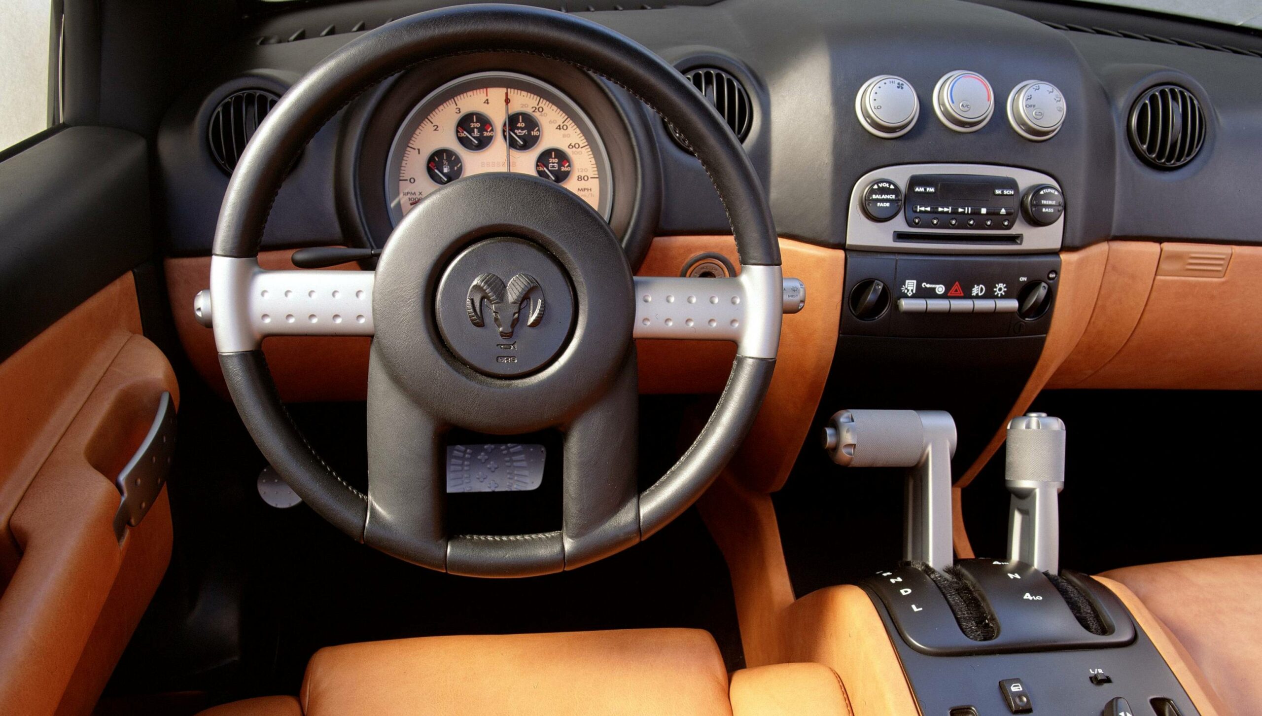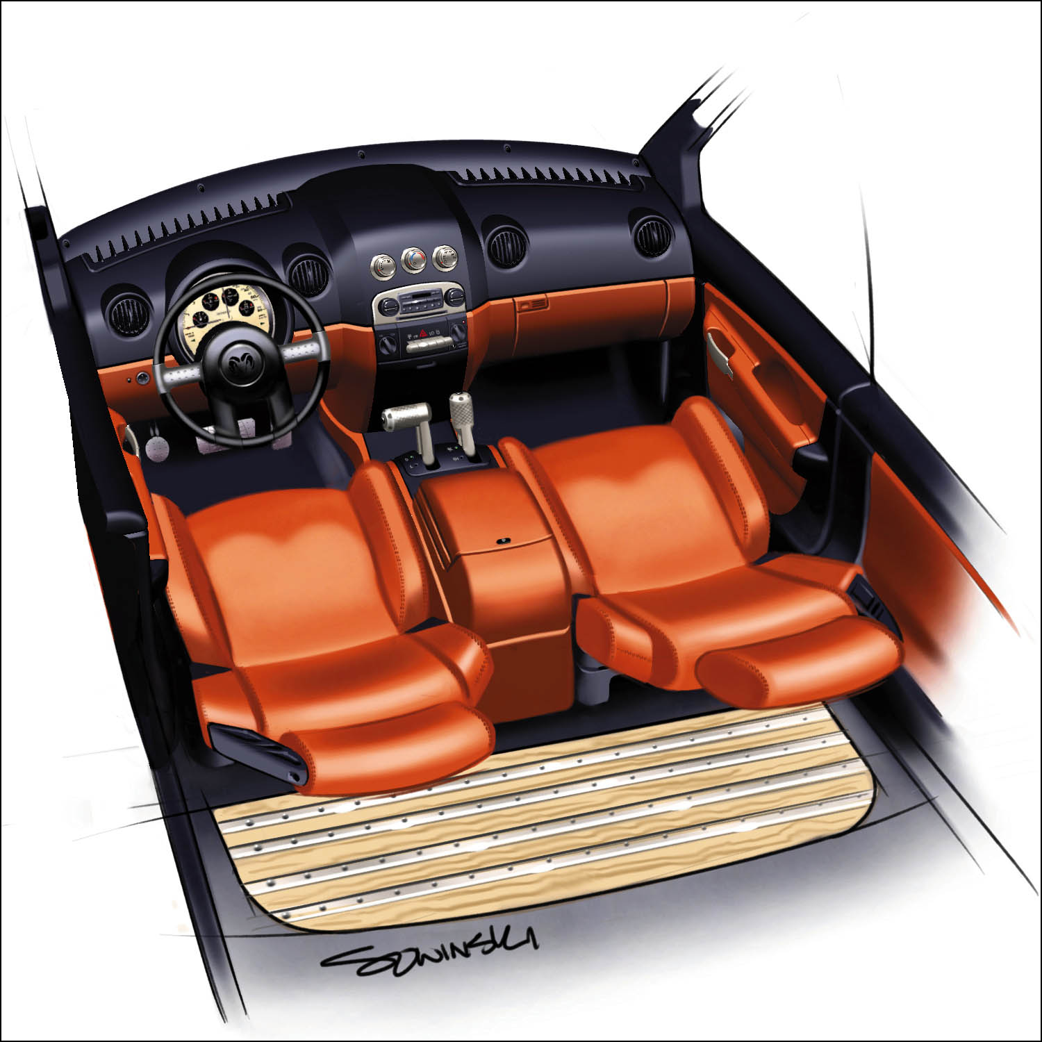 Cognac-colored leather was the primary interior shade with granite-colored leather for the accents. Various-sized drawers, as well as a netted pouch, lined the back of the cab for convenient storage. The instrument panel gauges all resided within a single, round steering cluster similar to a chronometer watch, and created a clean and fresh design approach.