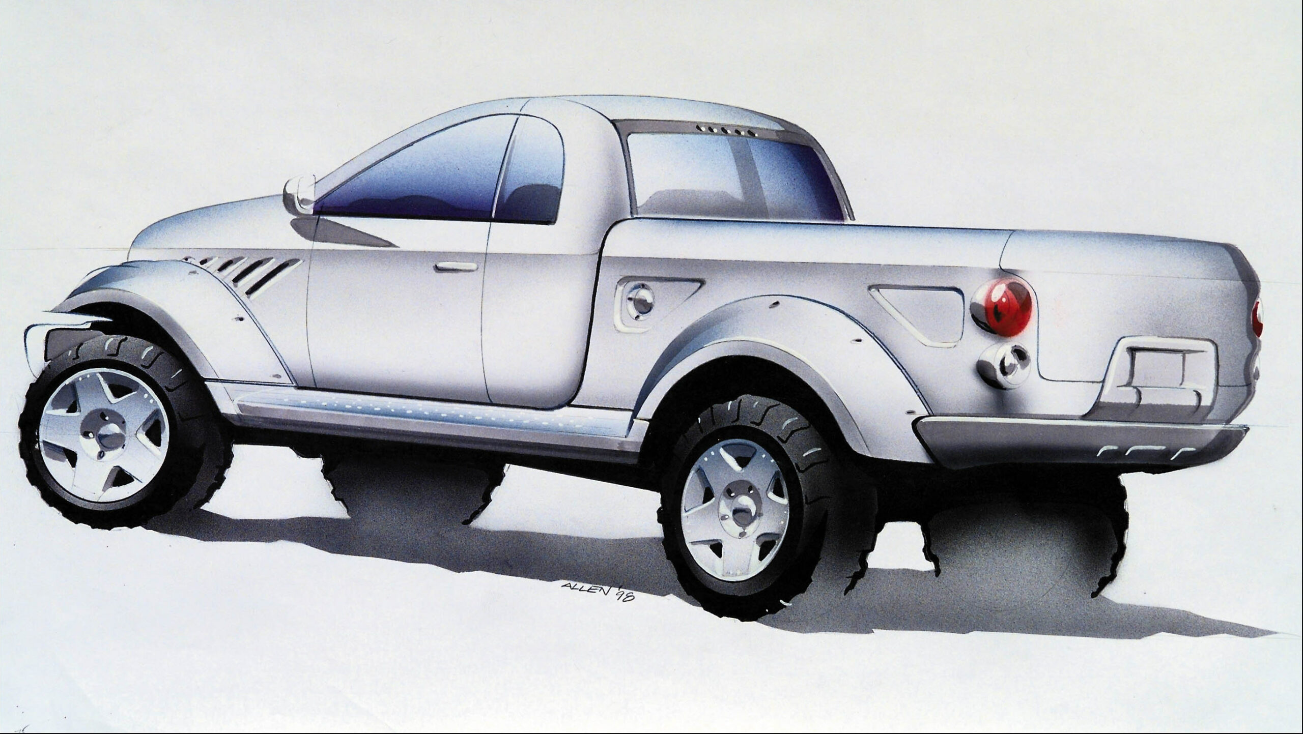 “Early in the design process, we debated whether to do a basic work truck versus an upscale truck,” Allen said back in 1999. “We chose to distance ourselves from the ultimate simplicity of the original truck. That’s why you don’t see the spare tire mounted on the side of the truck box or free-standing headlamps. I see this as a thrill-seeker’s truck, for the gear-oriented sports enthusiast. It’s the vehicle to take you rock climbing or mountain biking.”