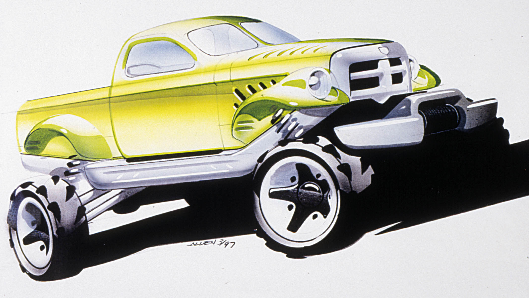 The handsome exterior of the Power Wagon was created by Head of Jeep® Design, Mark Allen. At the time, Allen was Senior Designer for the Dodge Truck studio, creating not only the Power Wagon Concept, but vehicles like the 1997 Dodge Dakota Sidewinder, and 2001 Dodge PowerBox Concept.