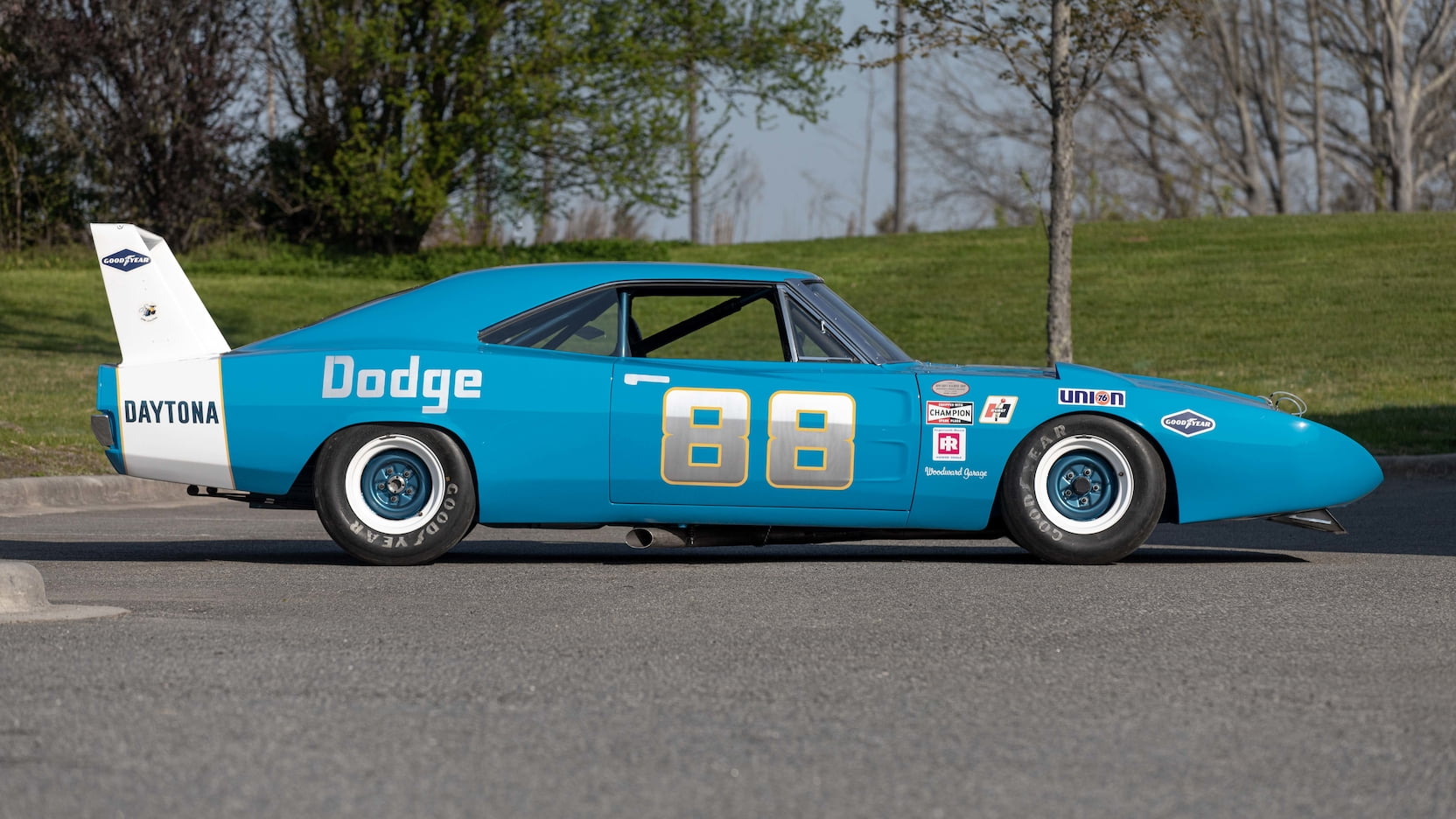 The car was simply known as the “Blue Car” according to the documentation of the test and later authenticated by Chrysler Racing Engineer George M. Wallace in 2001. The car wears the serial number “DC-93” and was originally raced in its Charger 500 configuration at the 1969 Daytona 500 by driver Paul Goldsmith before it was converted to a test vehicle.