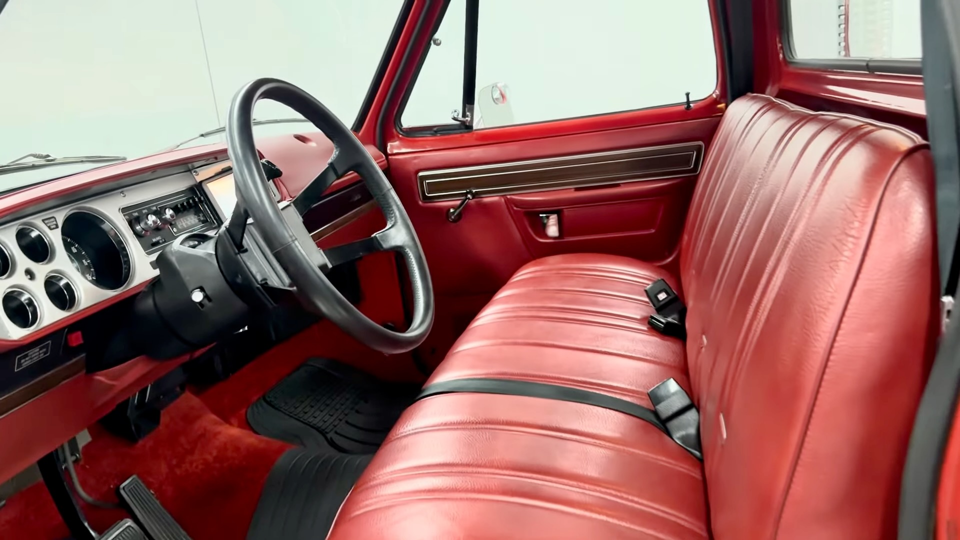 What makes this particular truck special isn’t just its originality—it’s the way it has survived. The factory Bright Canyon Red paint, real wood trim, chrome stacks, inside surfaces, wheels, and even the small details look almost untouched. Trucks like this were often used, abused, crashed, painted over, or modified. This one avoided all of that. It spent its life with a single owner who cared enough to preserve it.
